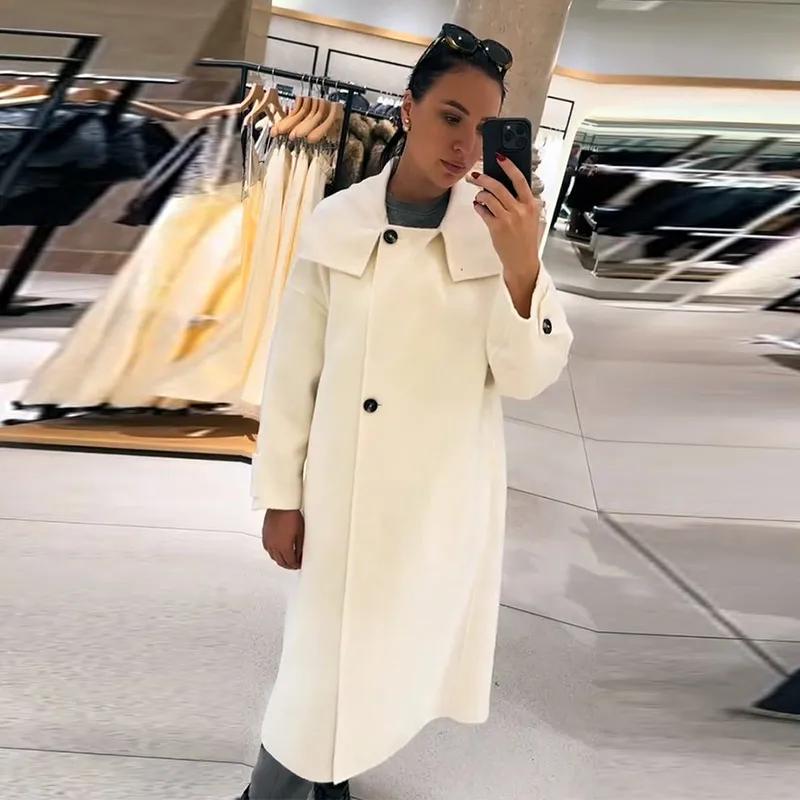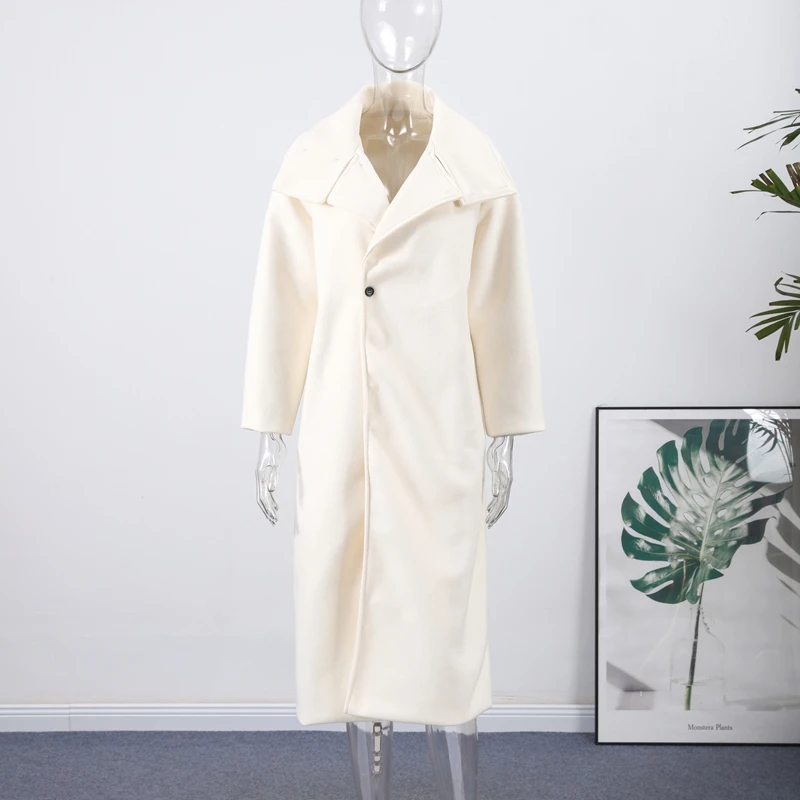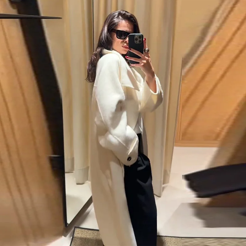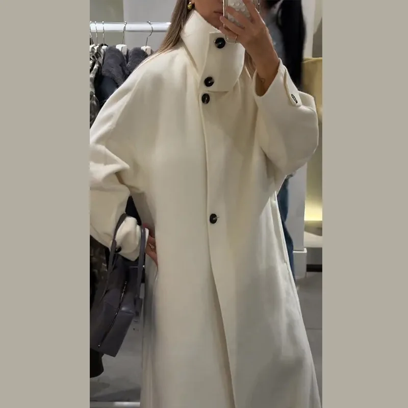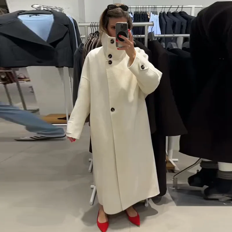 Elegant Women's Overcoat Stand Collar Single Breasted Full Sleeve Solid Female Long Coats 2025 Autumn Fashion Chic Lady Outwear