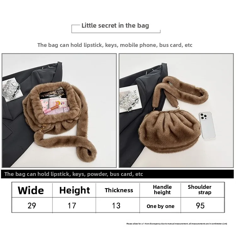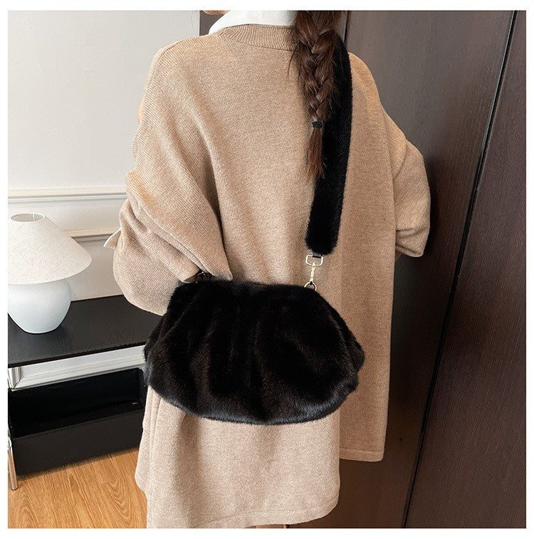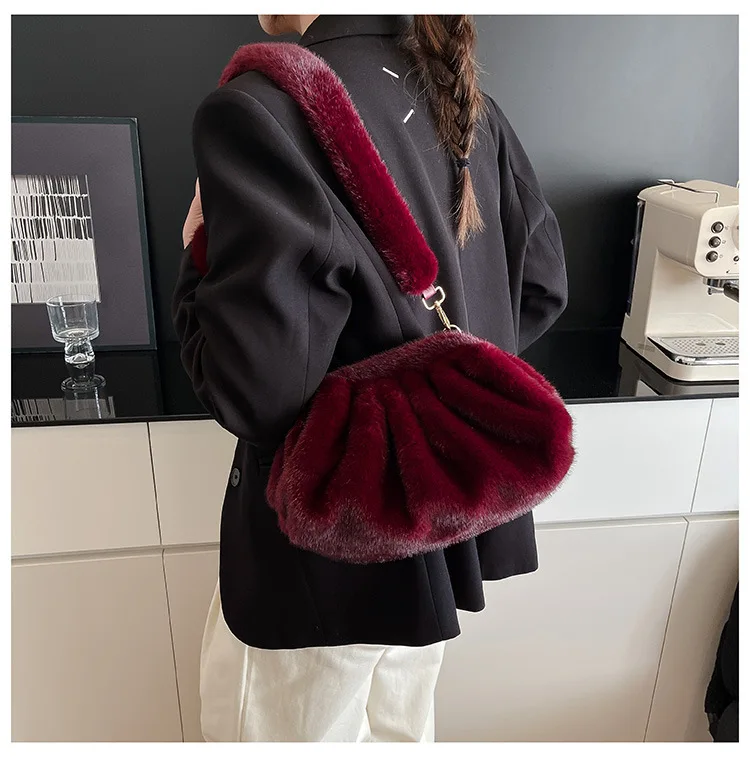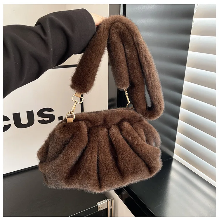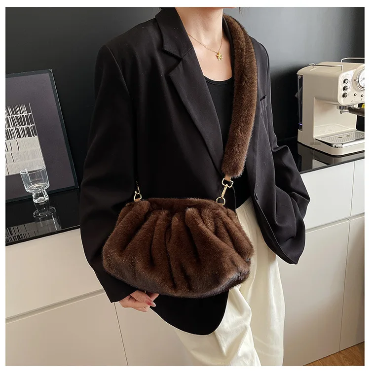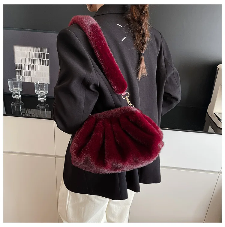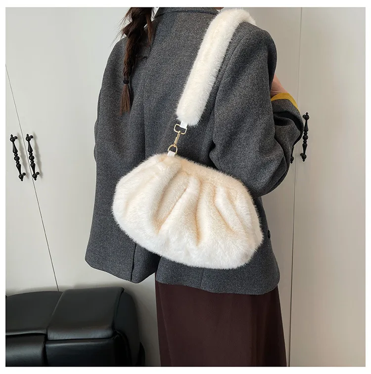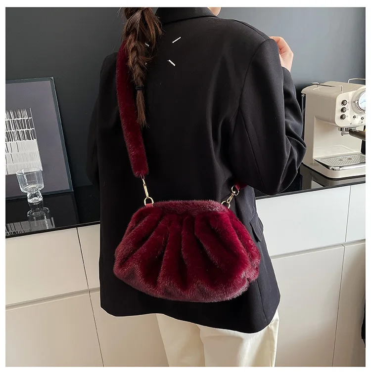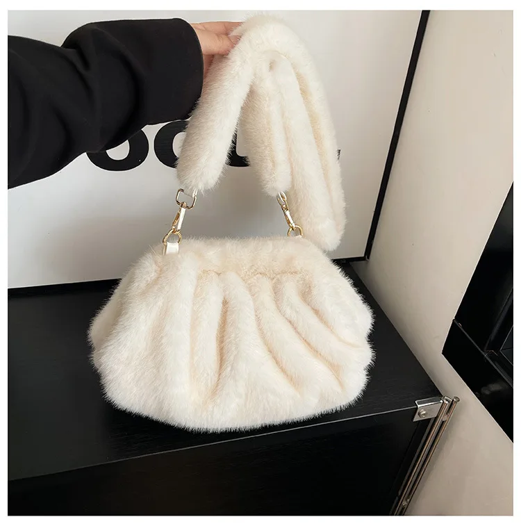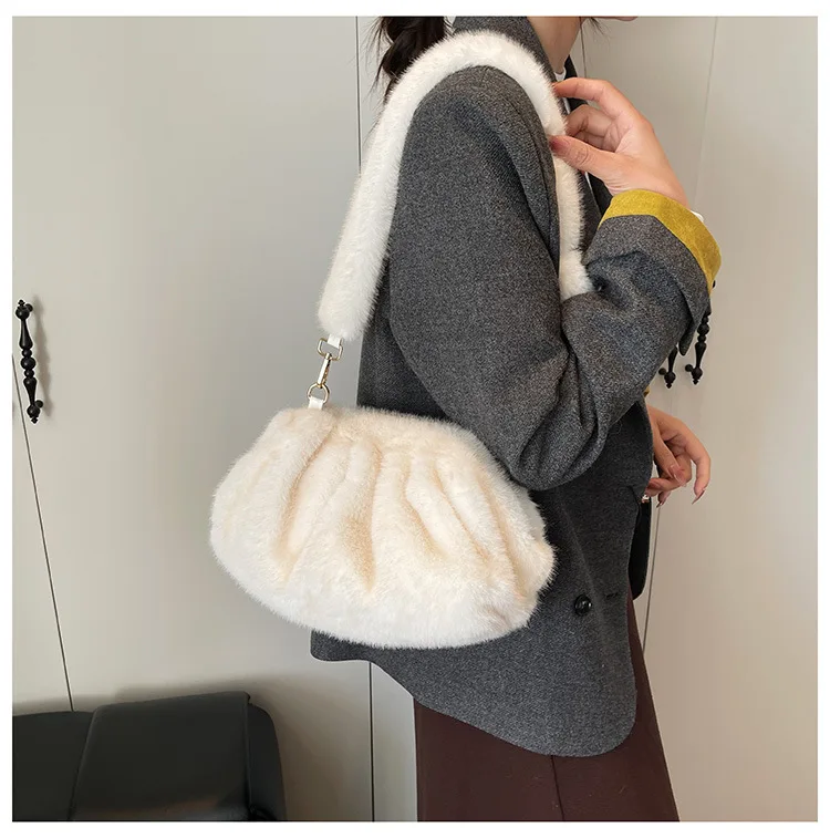 Elegant Wrinkled Cloud Clutch Bag Faux Fur Shell Shoulder Crossbody Bag Women Stylish Pillow Bag Guangzhou High Quality Bag