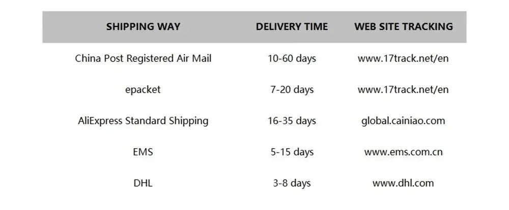 *The delivery speed only for reference, sometimes will be delayed by holidays, festivals, bad weather, customs, Etc.