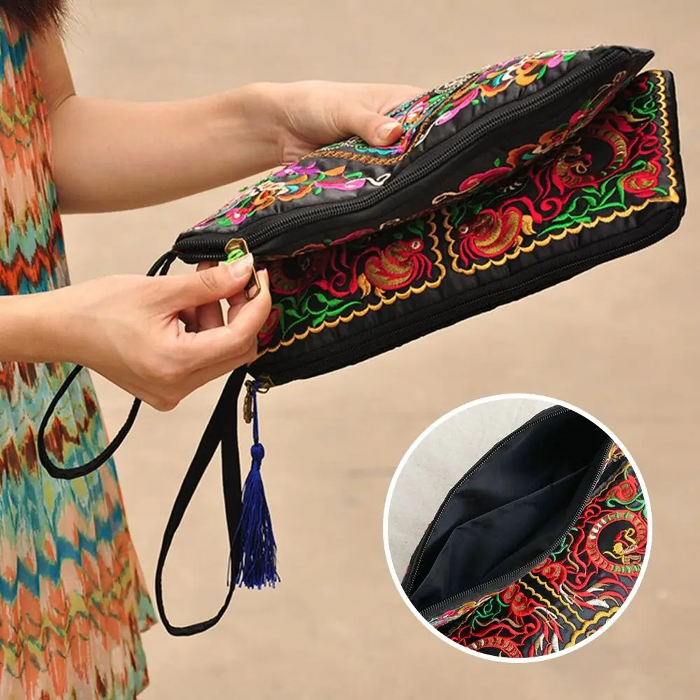 Ethnic Embroidered Small Flap Women Handbag Coin Purse Lady Clutch Butterfly Flower Bags