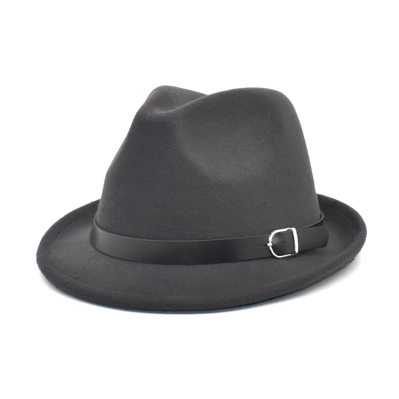 European Classical felt Fedoras Hat for Men Women Cowboy Trilby Cap Homburg Church Jazz Hat with Belt