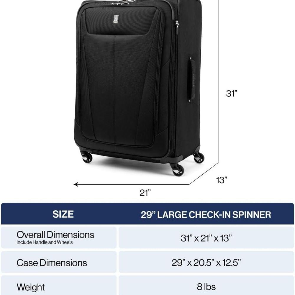 This spacious suitcase is slightly lighter than its Maxlite 4 counterpart, offering a 29-inch luggage solution with spinner wheels for enhanced mobility during longer trips. The suitcase is designed to maximize packing efficiency, making it an ideal choice for check-in luggage.