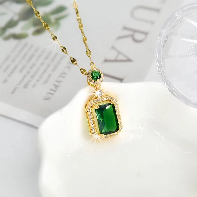Exquisite Fashion Emerald Perfume Bottle Necklace Earrings Ring 3 Piece Set Classic Banquet Wedding Jewelry Set Birthday Gift