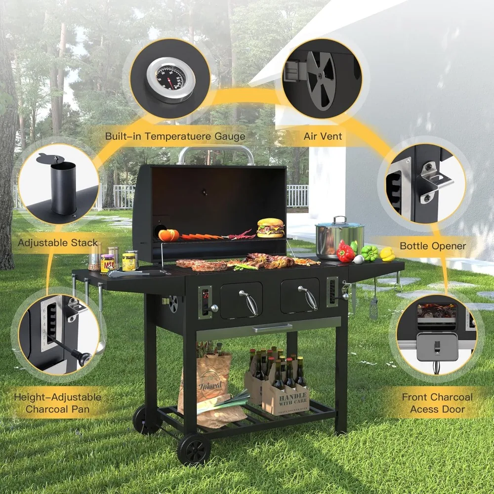 - ?Liftable Charcoal Tray?This charcoal grill features lifting handle on both left and right sides, with a total of 6 gears for you to choose from, which allows you to easily control the distance between the charcoal pan and food for better heat control