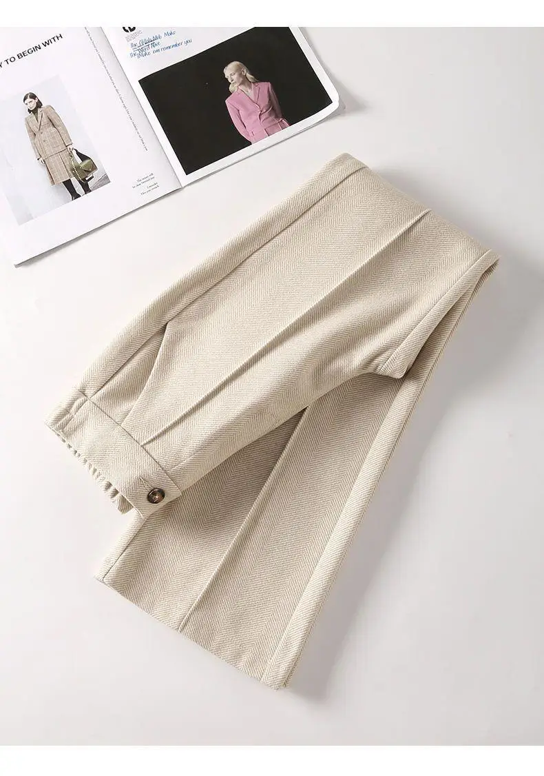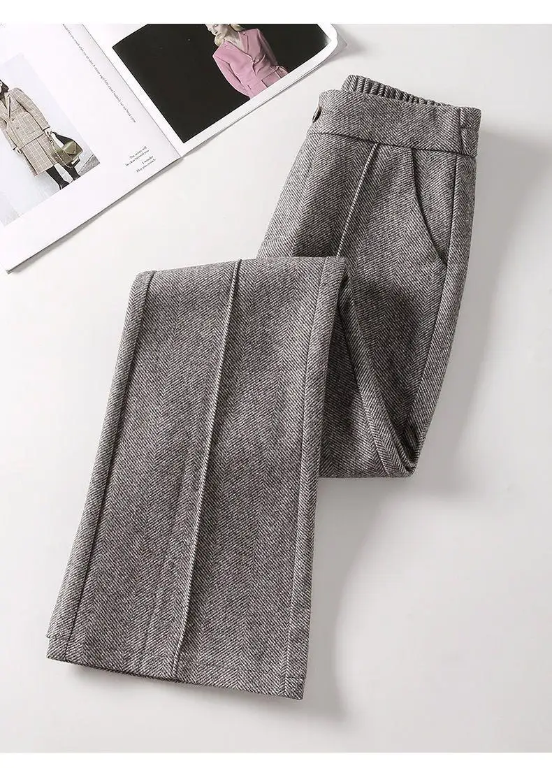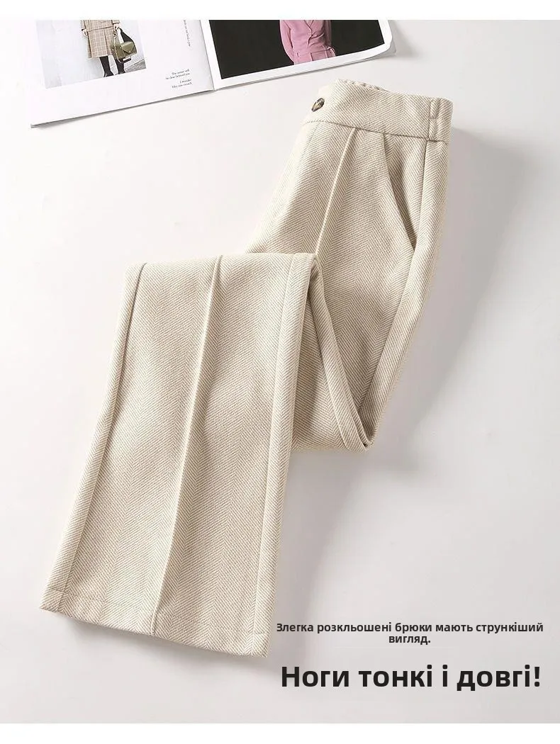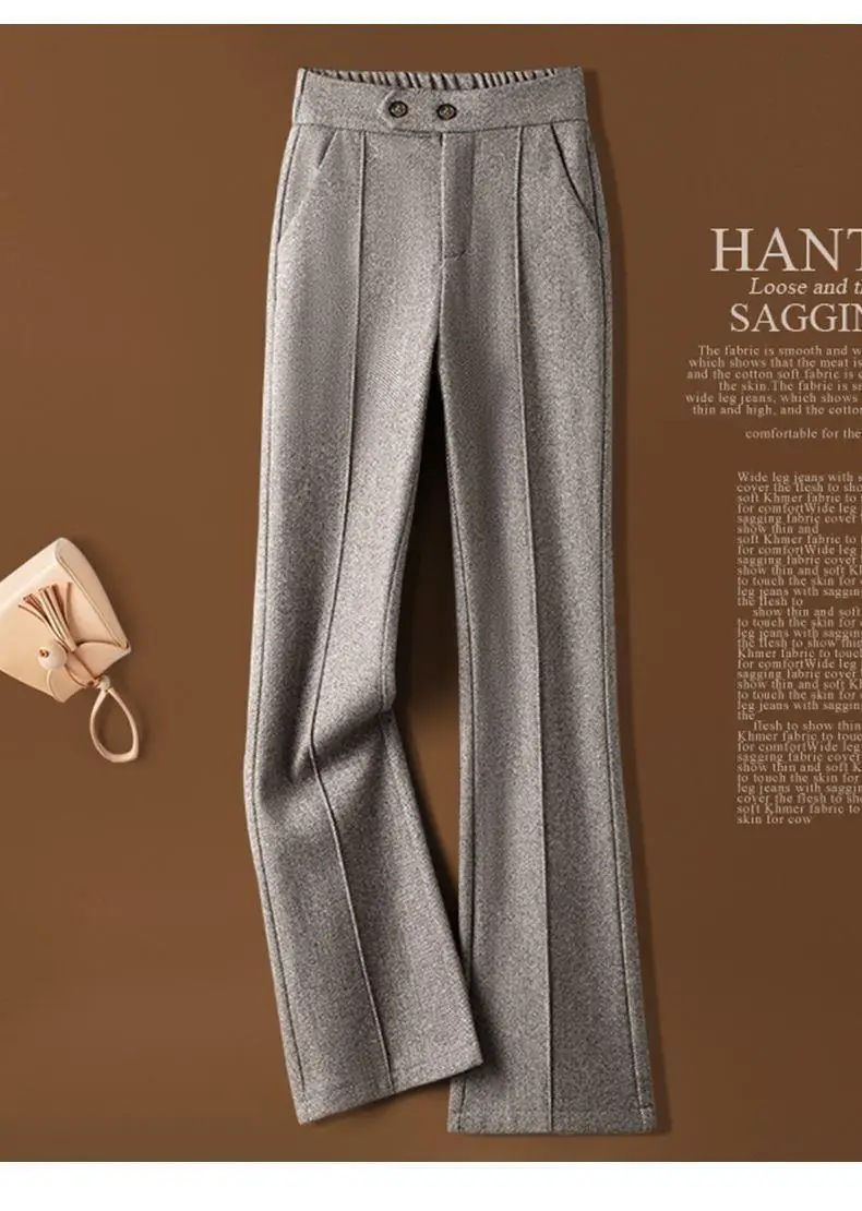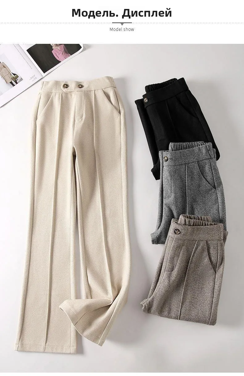 Faionable Thiened Woolen Flared Pants High Waist Casual Trousers for Women Autumn Winter New Sle Slimming Wide Leg Pants