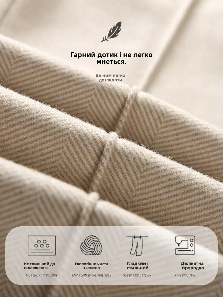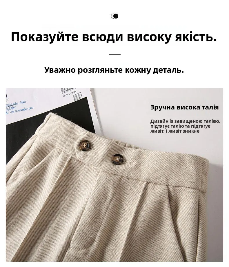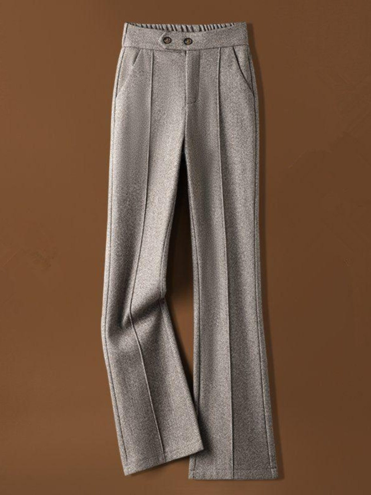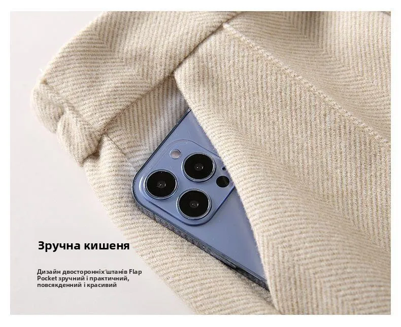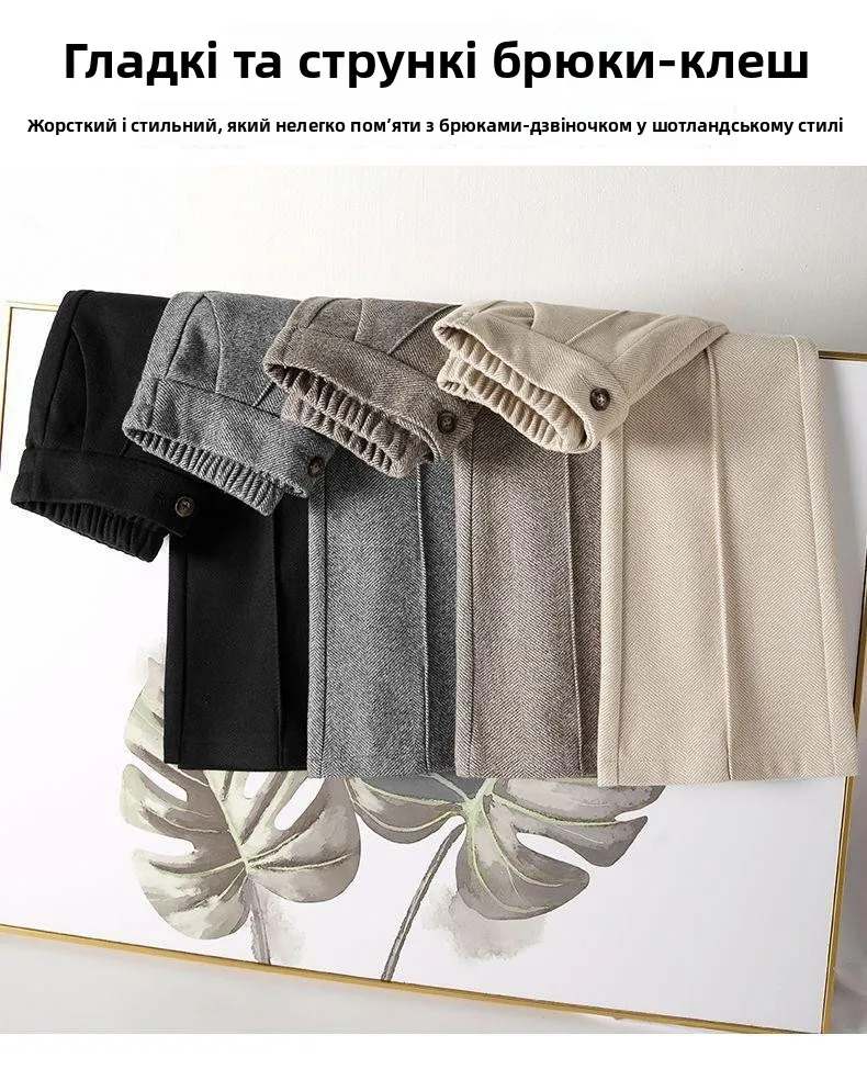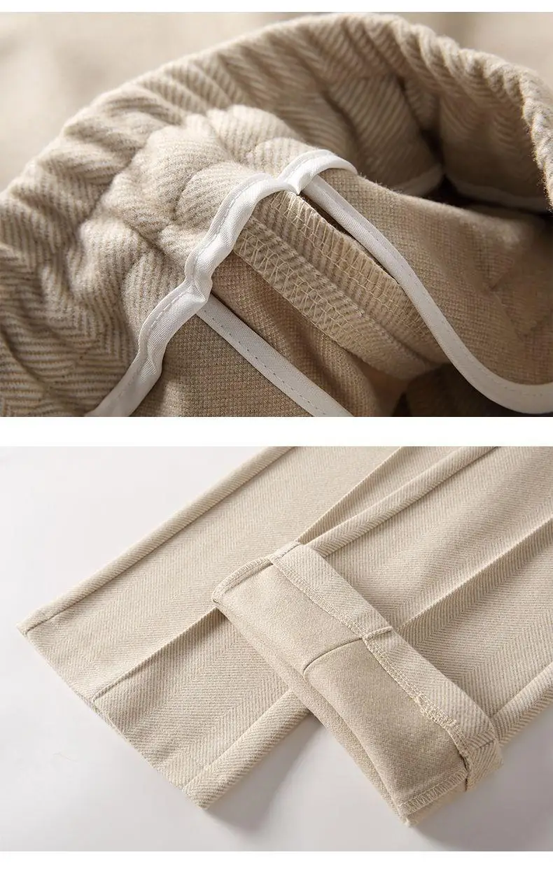 Crafted from thickened wool material, these trousers offer warmth and comfort during the colder months.