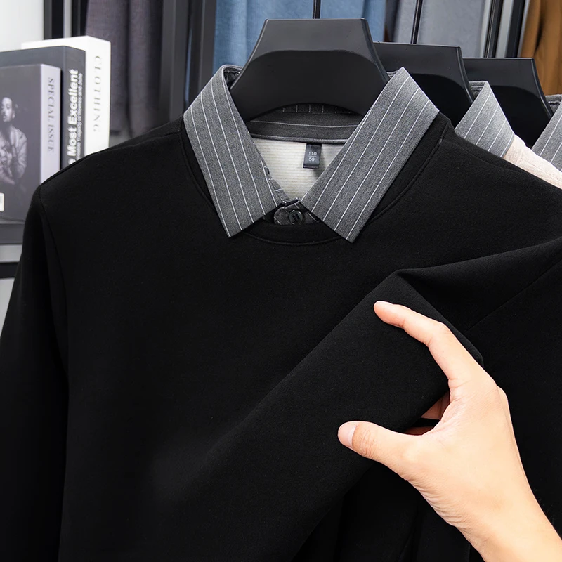 Fake Two-piece Striped Shirt Collar Knitted Sweater Men's Warm and Versatile Casual Woolen Shirt Waffle Top Winter Trend