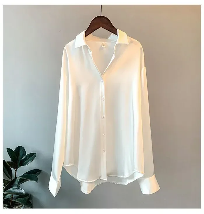 Fall Turn-down Collar Elegant Satin Loose Women Shirt 2025 Plus Size Blouse Autumn Vintage Casual Button Silk Tops