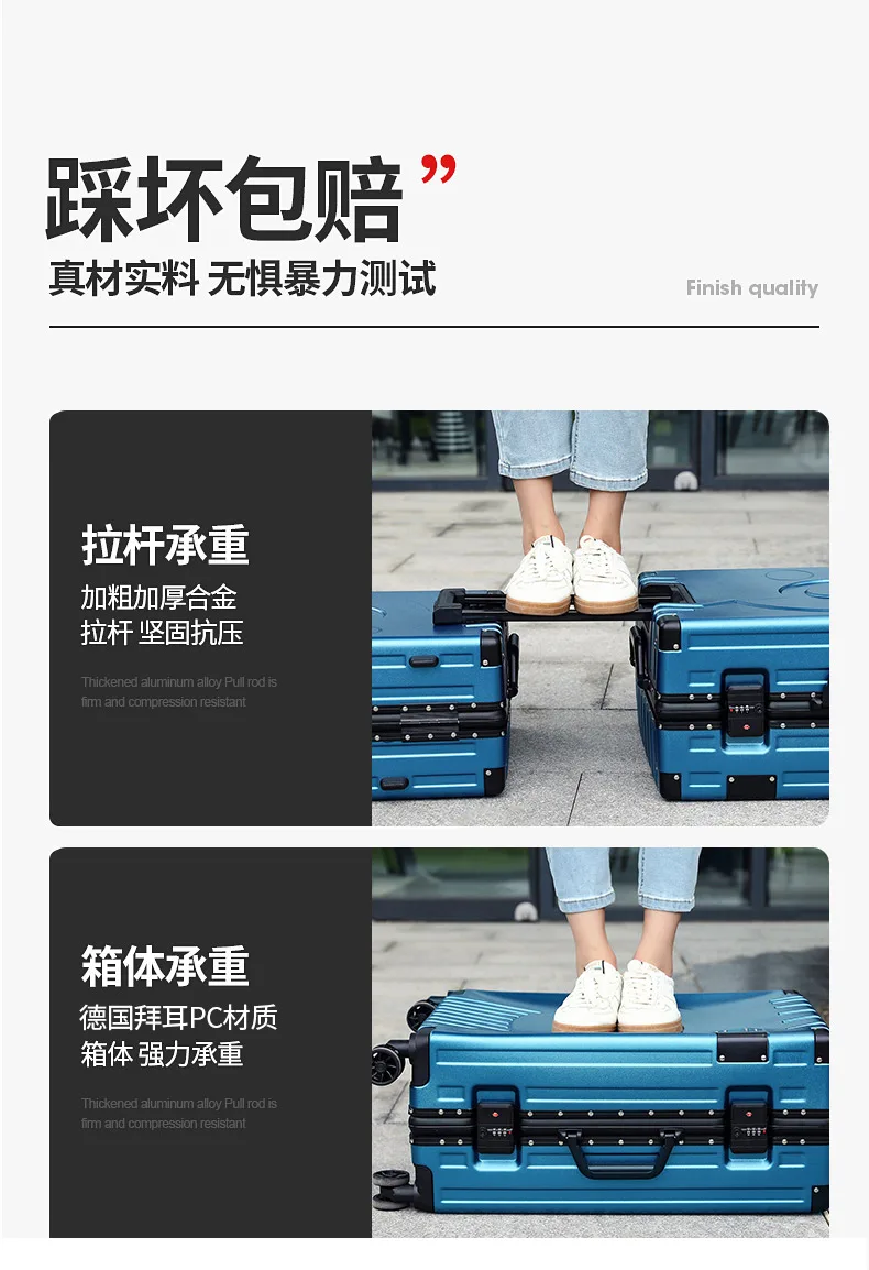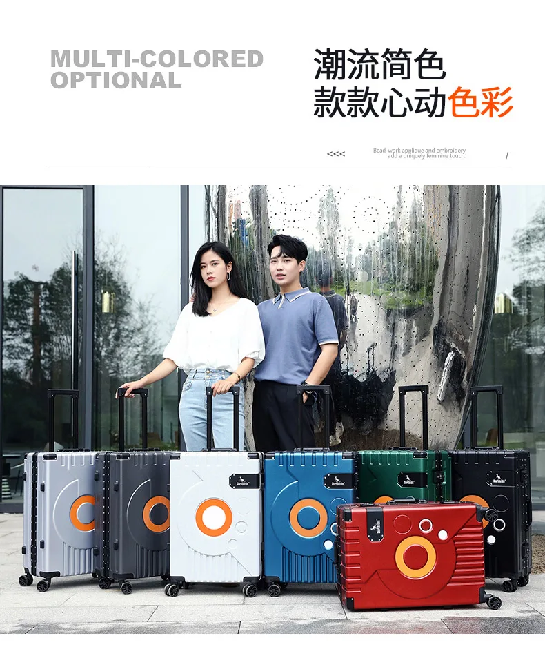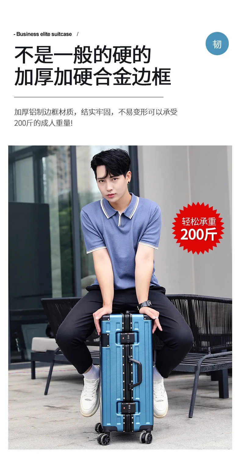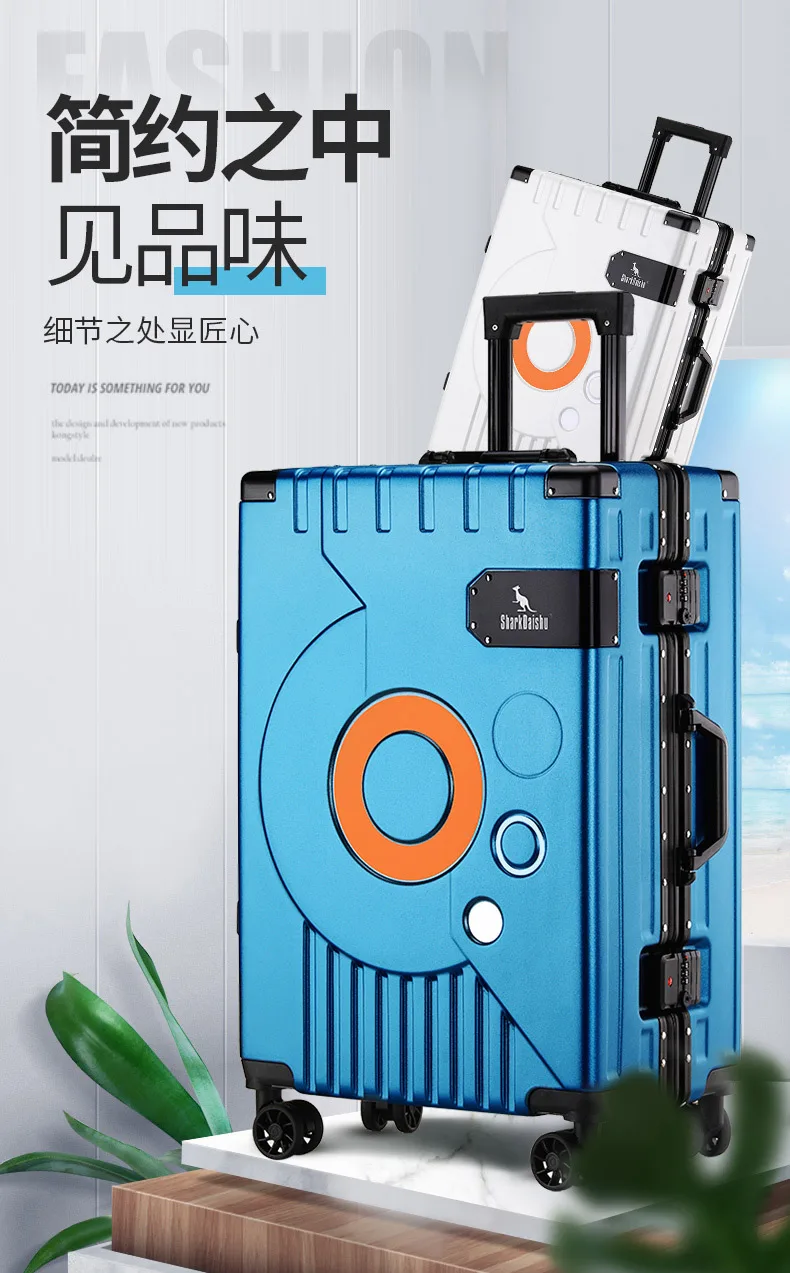 Fashion Aluminum frame travel luggage silent large-capacity trolley suitcase 20 inch suitcase carry on 24 inch password box