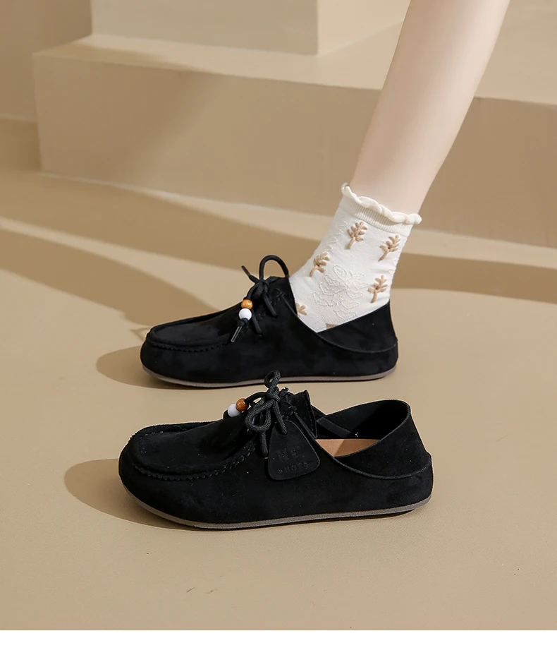 Fashion Brand Shoes Woman 2025 Autumn New Vintage Suede Loafers Pumps Women's Casual Flats Shoes British Style Flat Single Shoes