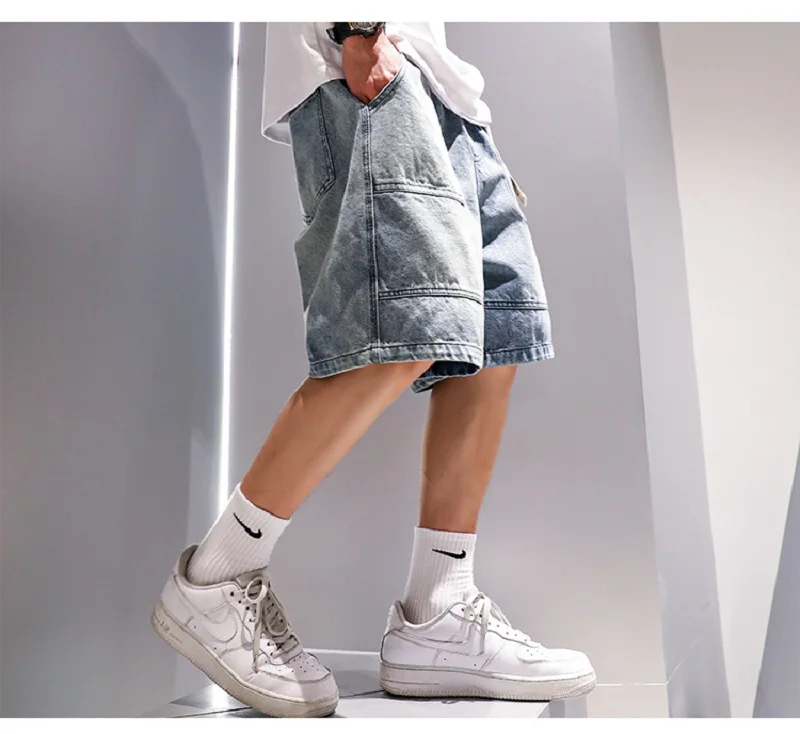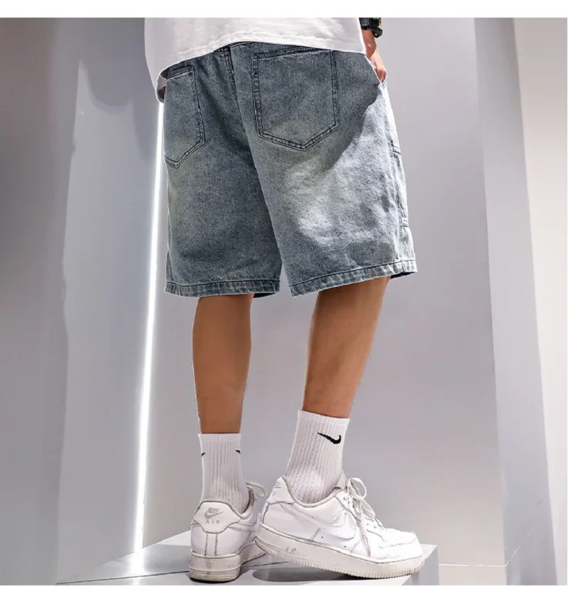 Fashion Casual Denim Shorts Men's Trend Ins Youth Pop Summer Wear Japanese Gothic Hip Hop Loose Casual Cargo Five Quarter Pants
