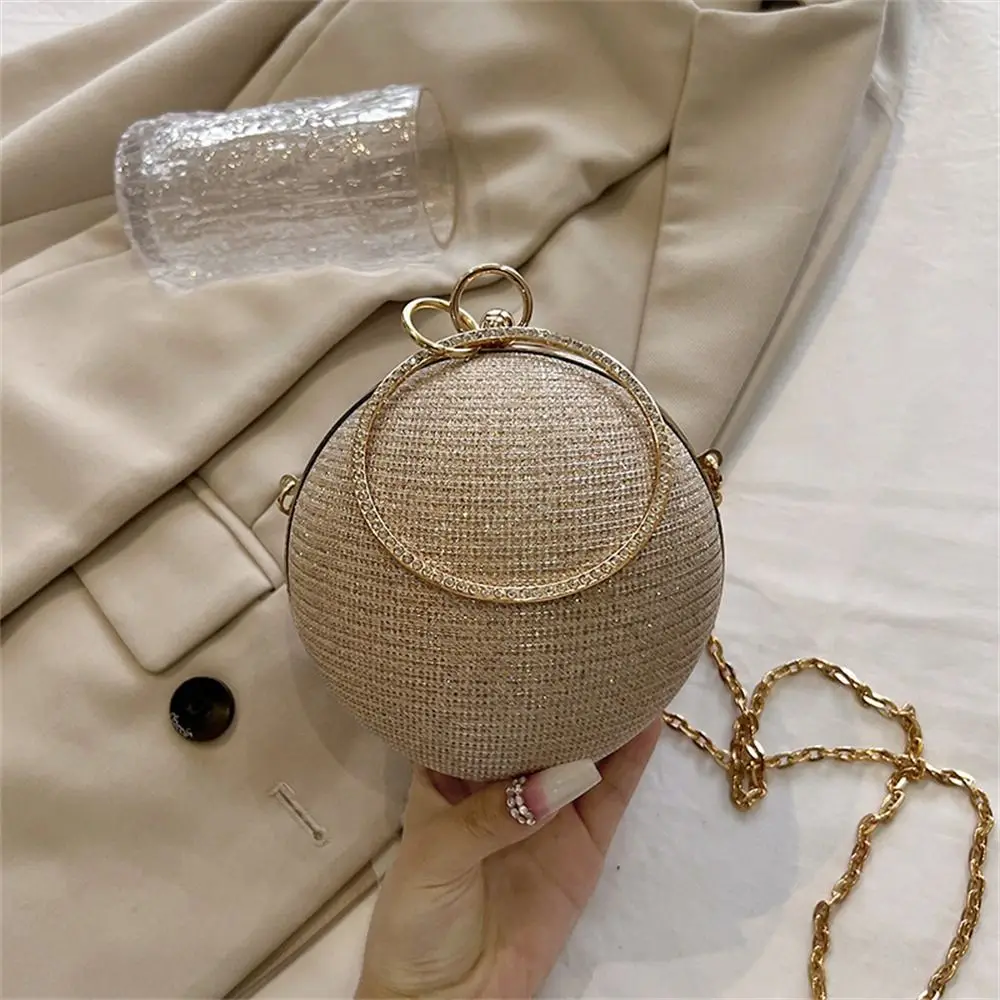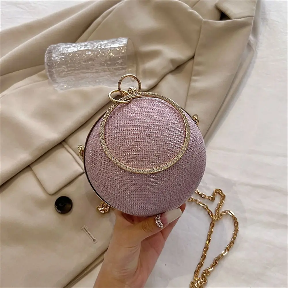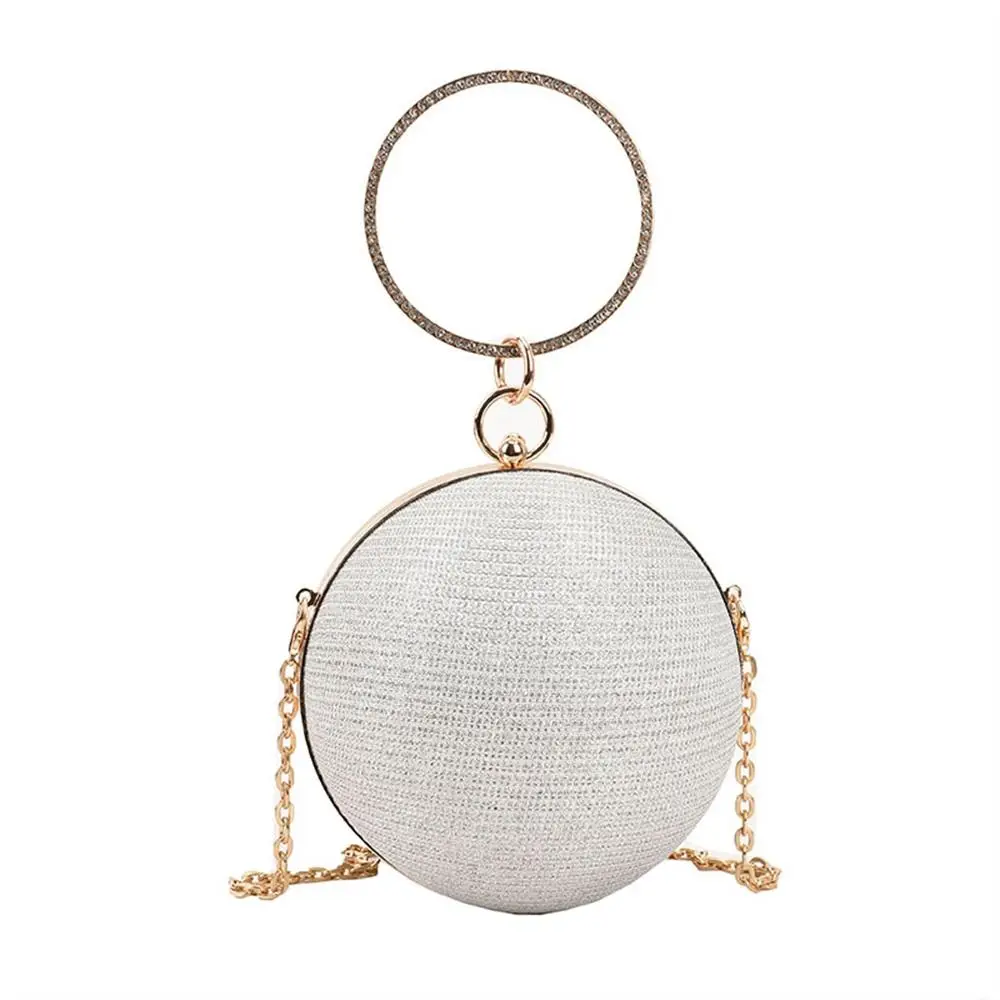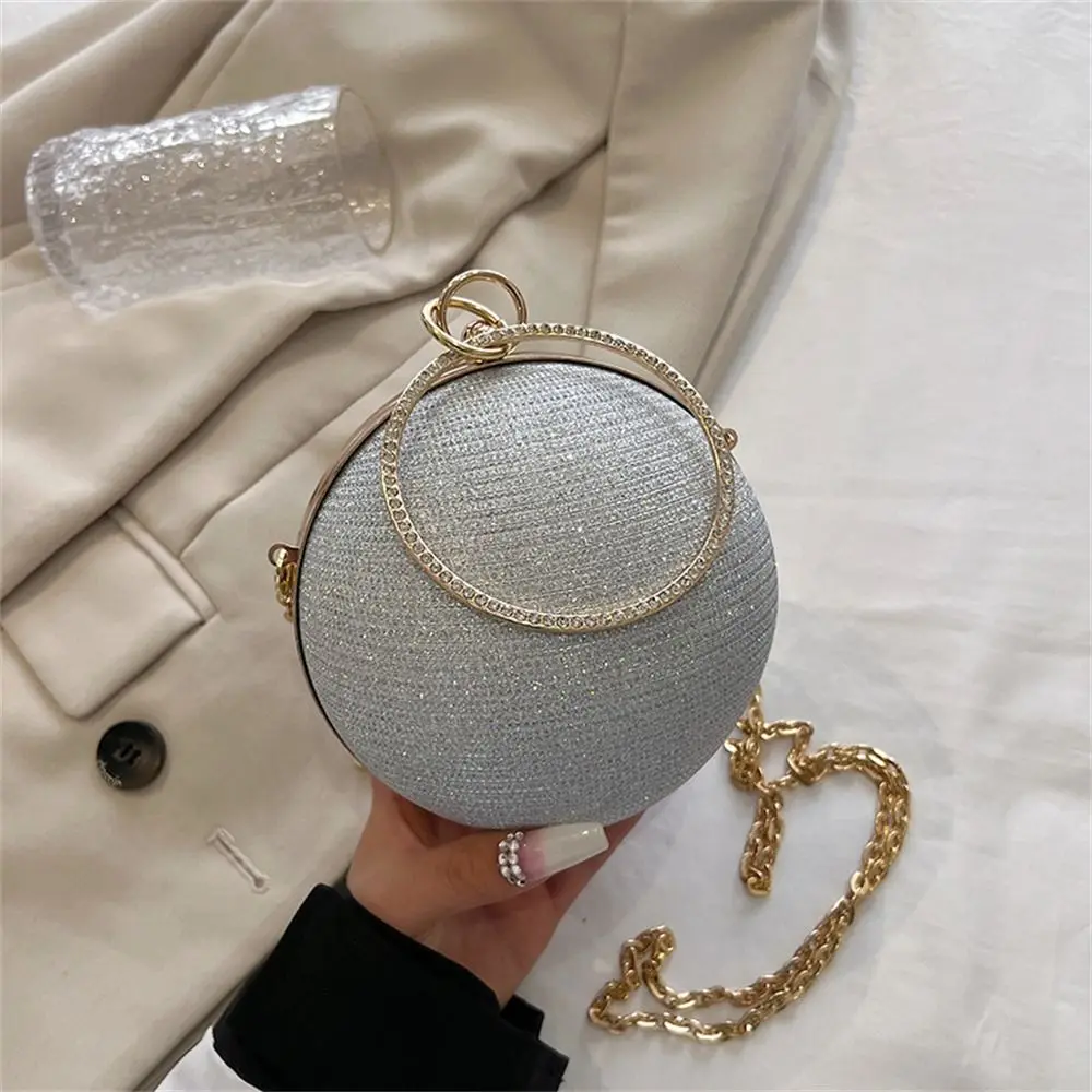 Fashion Circular Evening Bag Luxury Wedding Party Shoulder Bags Elegant Rhinestone Decorative Chain Banquet Clutch Handbags