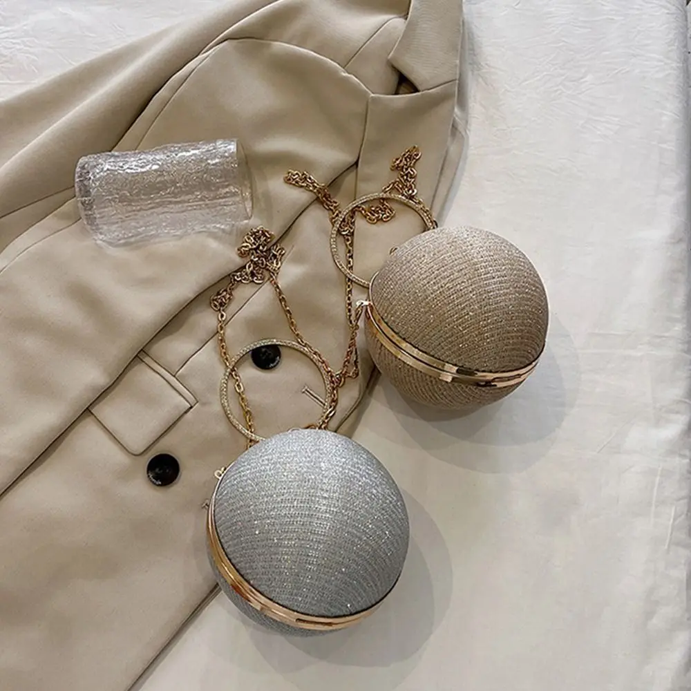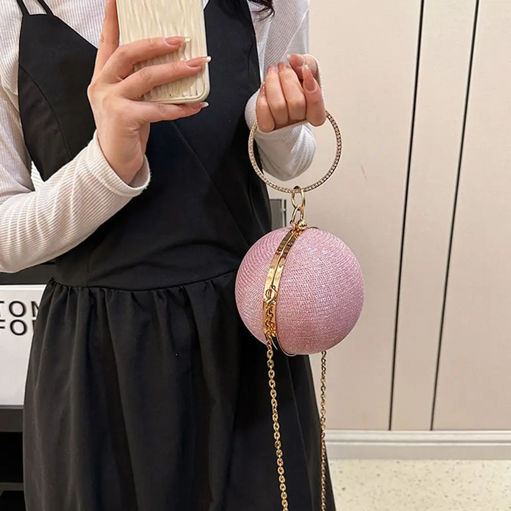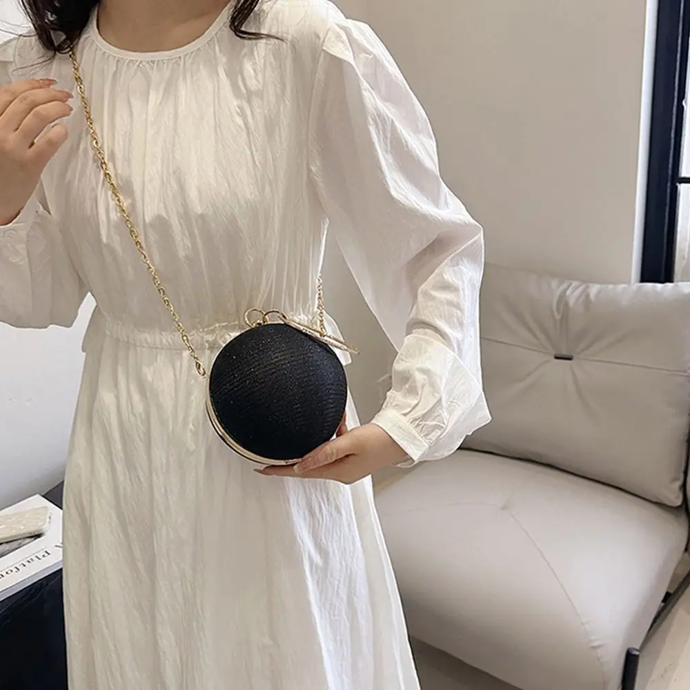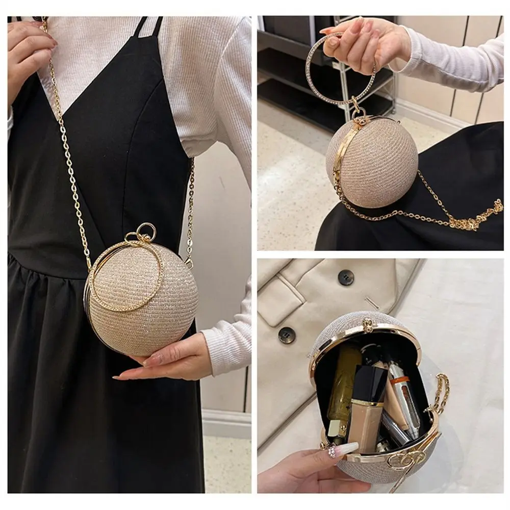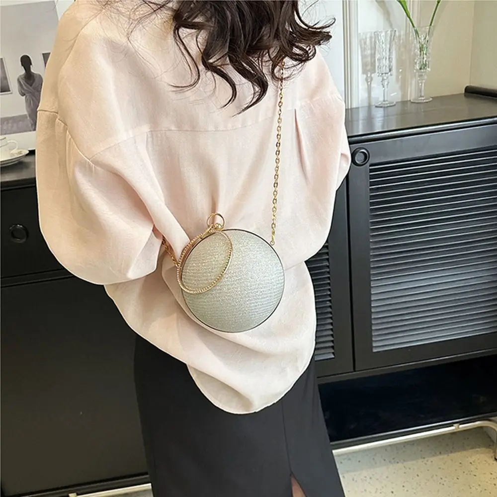 Fashion Circular Evening Bag Luxury Wedding Party Shoulder Bags Elegant Rhinestone Decorative Chain Banquet Clutch Handbags