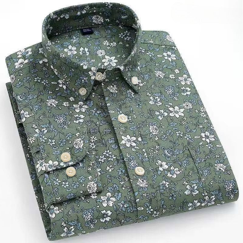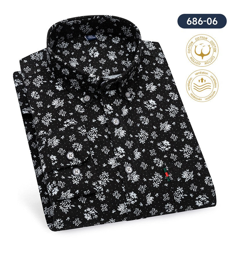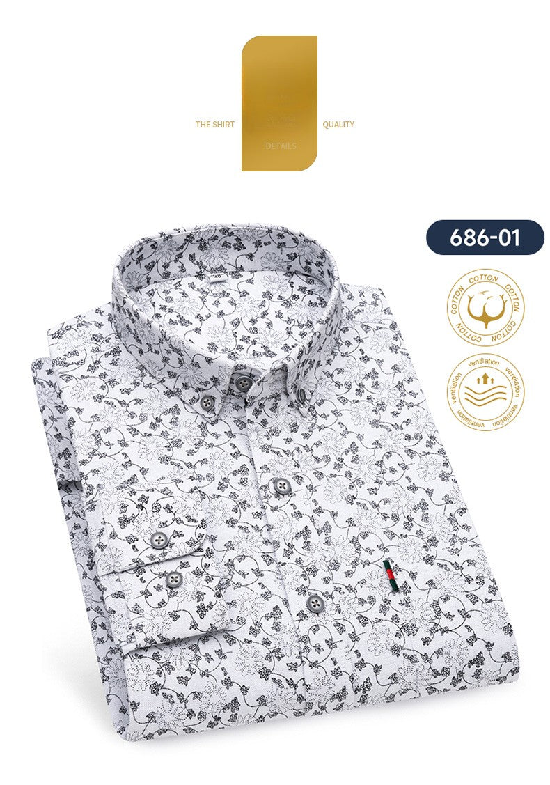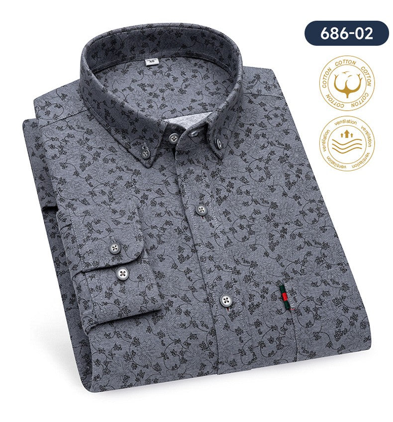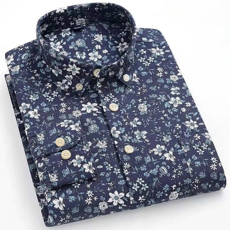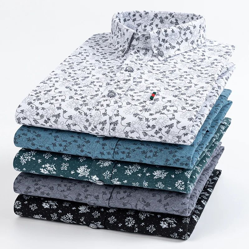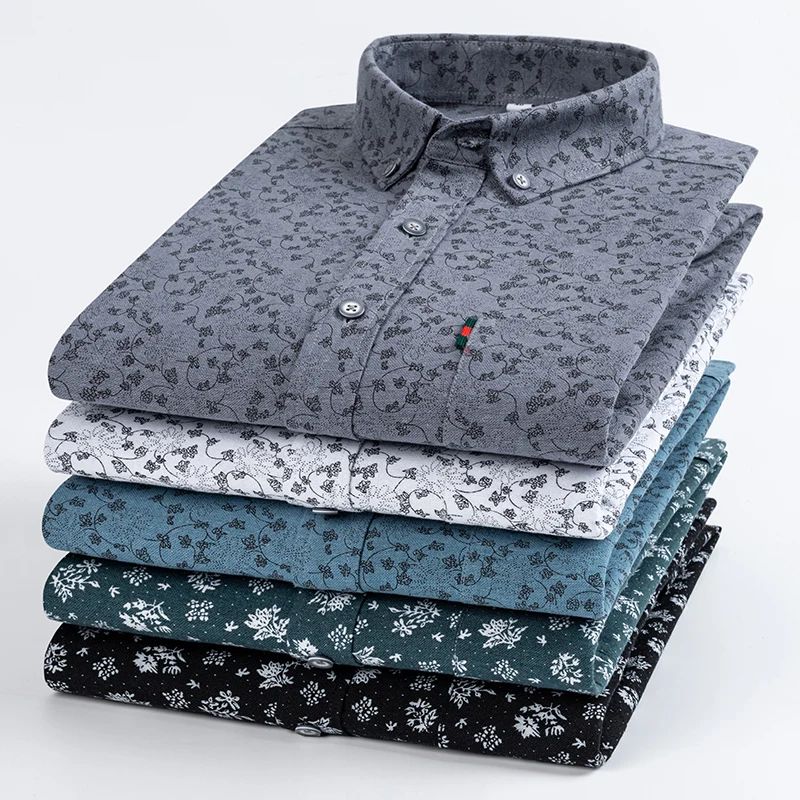 Fashion korean100%cotton casual long-sleeve shirts for men slim fit plain tops print designer vintage elegant clothes streetwear