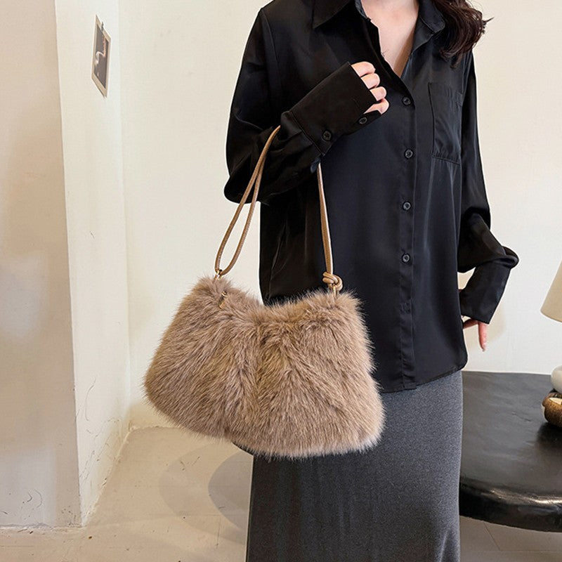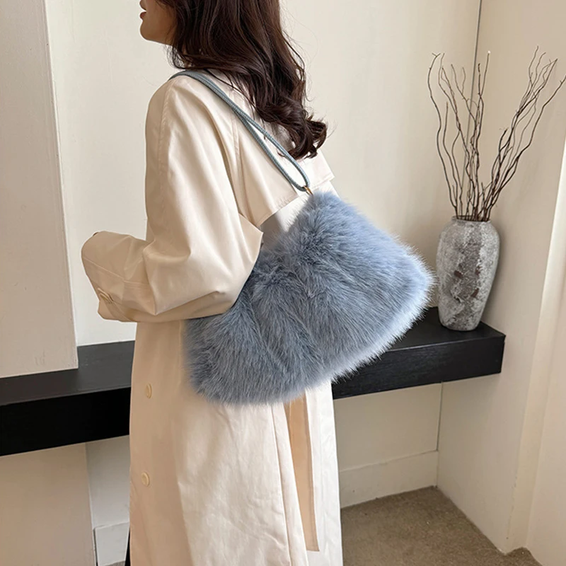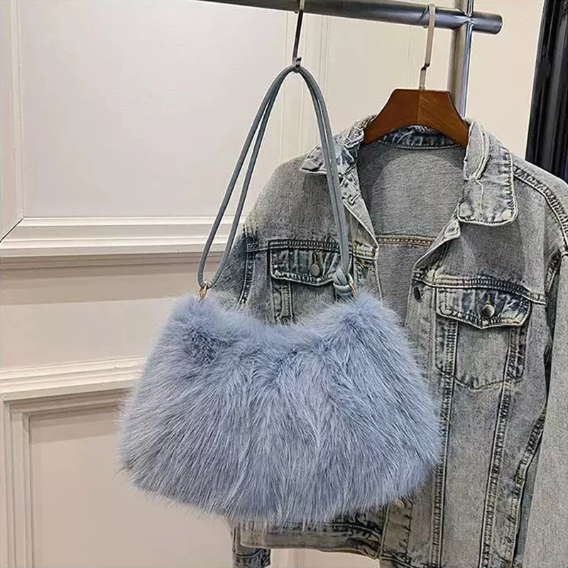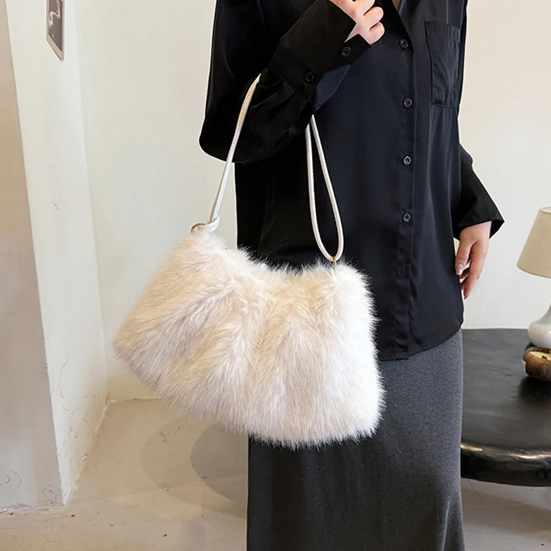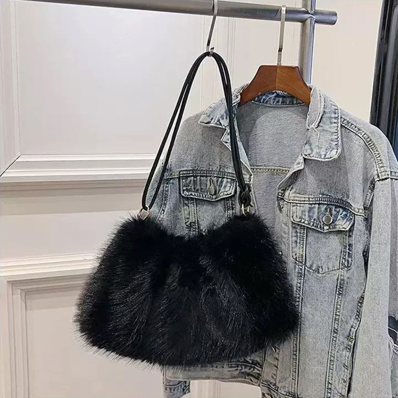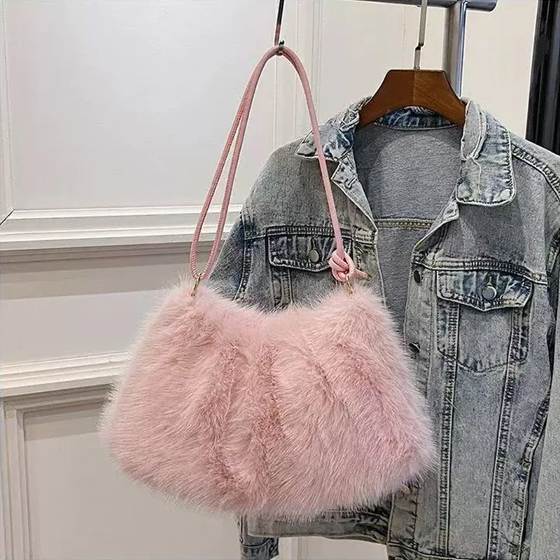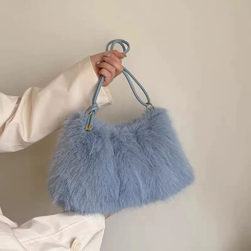 Fashion Luxury Faux Rabbit Fur Plush Shoulder Bag High-End Women's Tote Handbag for Stylish Gift Sending