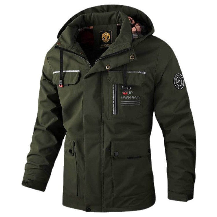 Fashion Men's Casual Windbreaker Jackets Hooded Jacket Man Waterproof Outdoor Soft Shell Winter Coat Clothing Warm Fleece Thick
