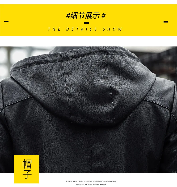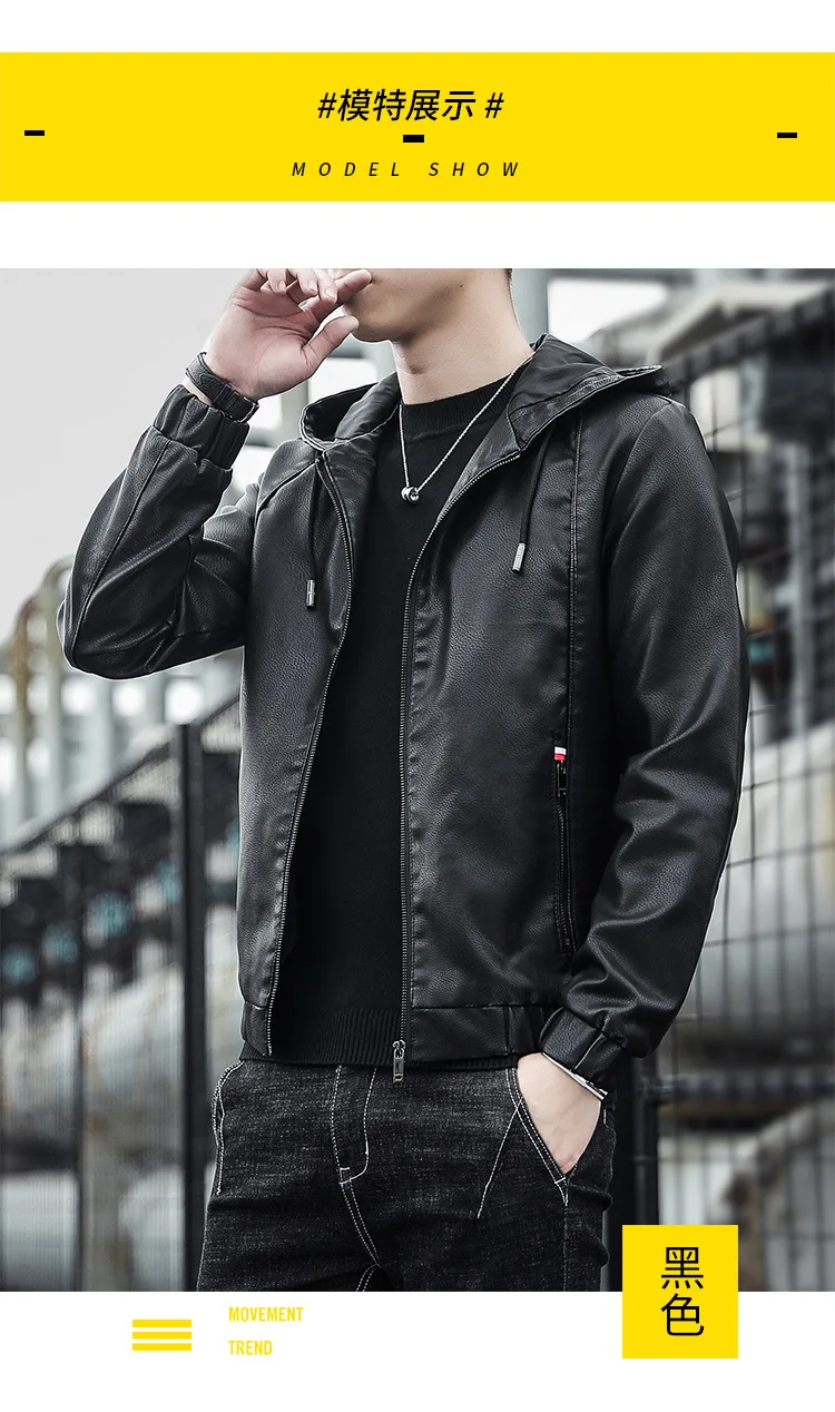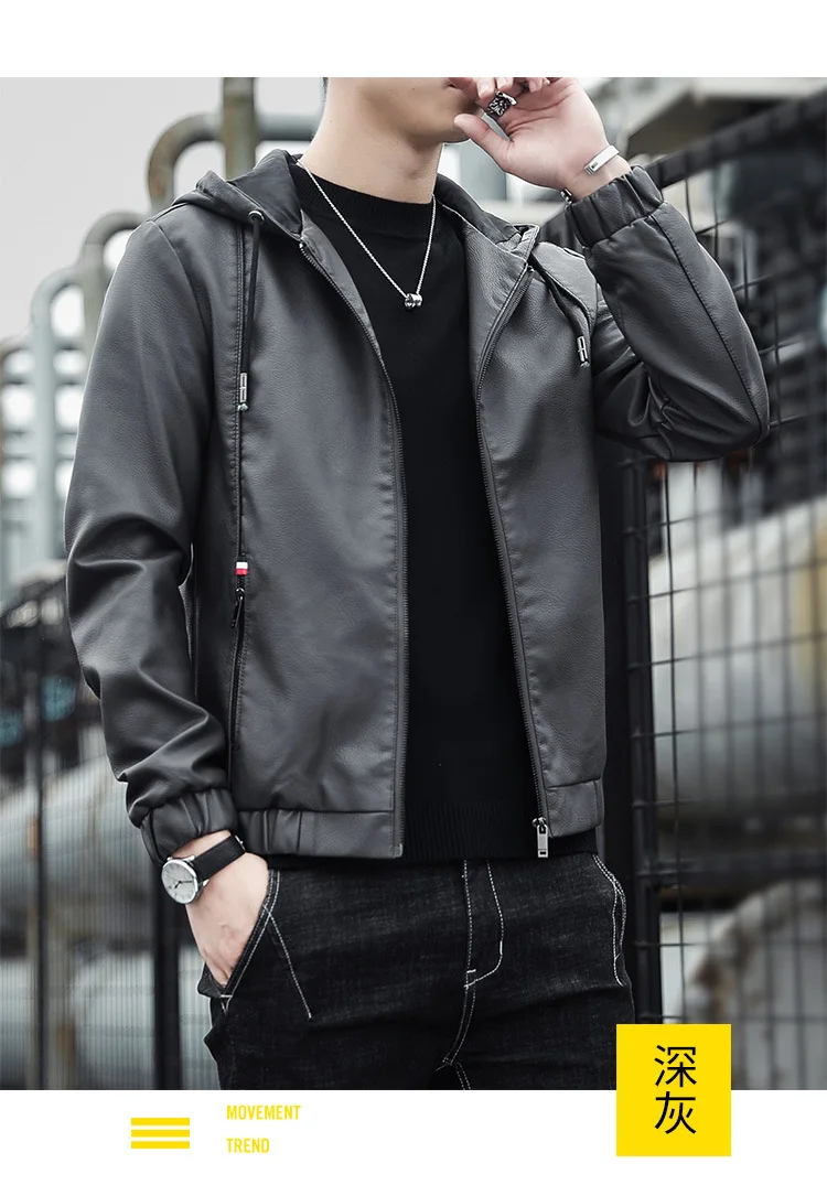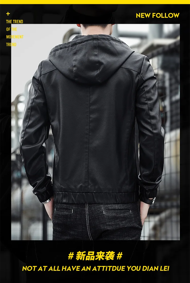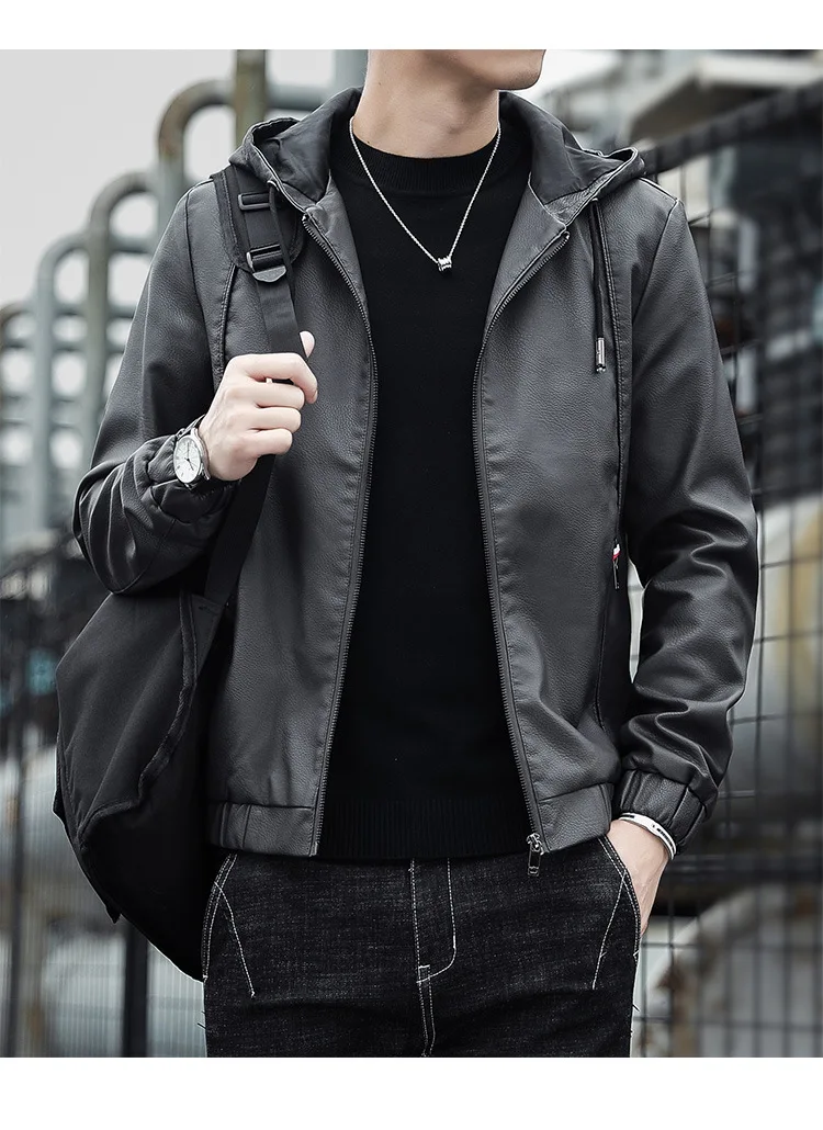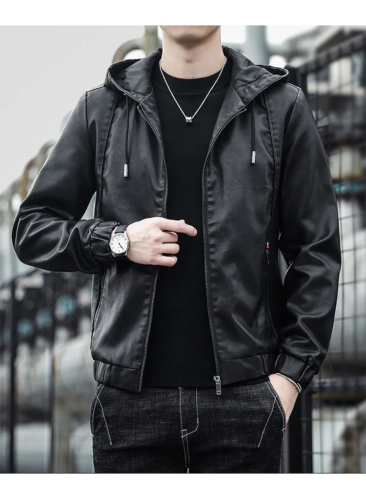Fashion Men's New Hoodie Leather Jackets Autumn Casual Clothing Jacket Biker Motorcycle Slim Leisure Coats Windproof Warm 4Xl