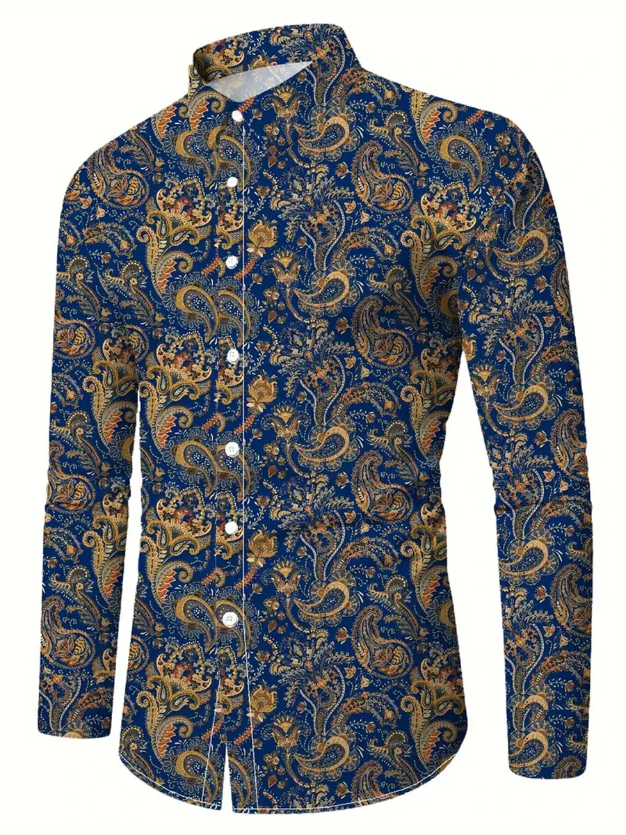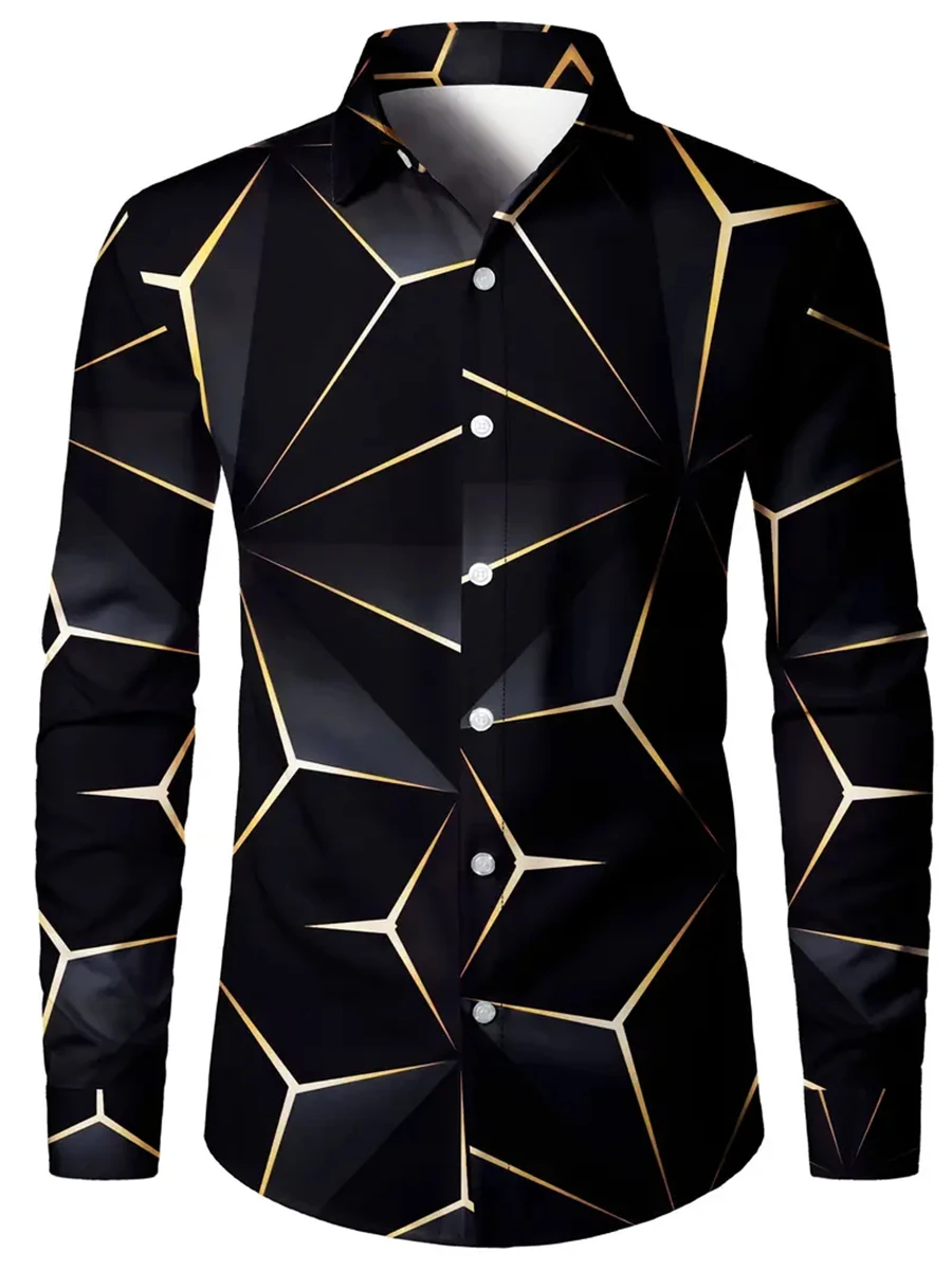 Fashion men's printed long-sleeved shirt casual handsome personality comfortable men's high-quality lapel large size tops