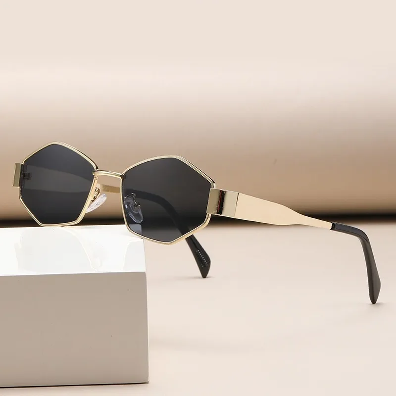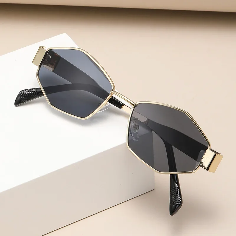 Fashion Polygonal Women Sunglasses 2025 Vintage Brand Rhombus Ladies Sun glasses Shades Unique Metal Frame Punk Eyewear Men