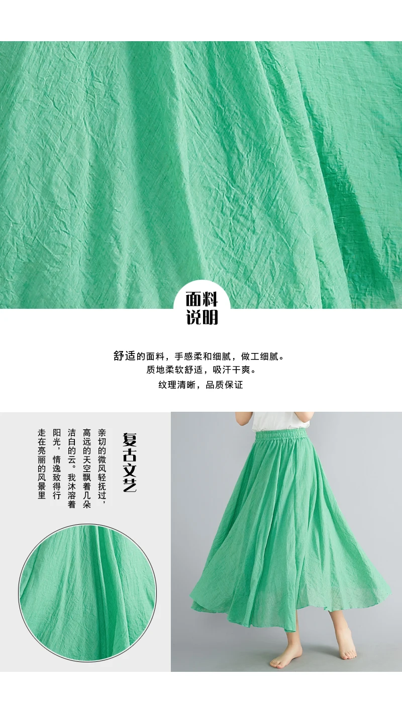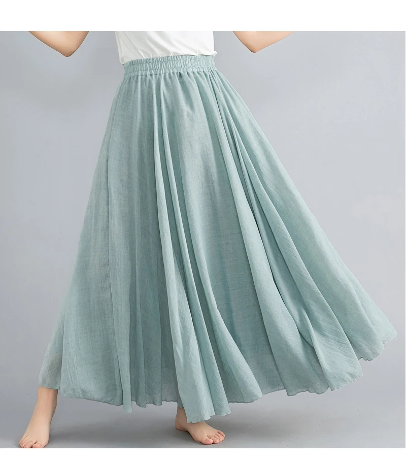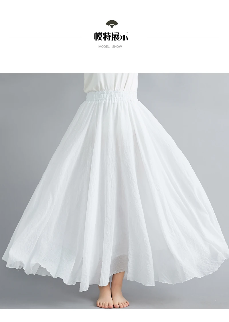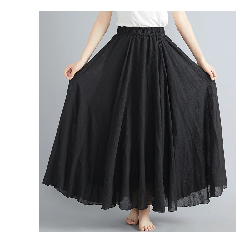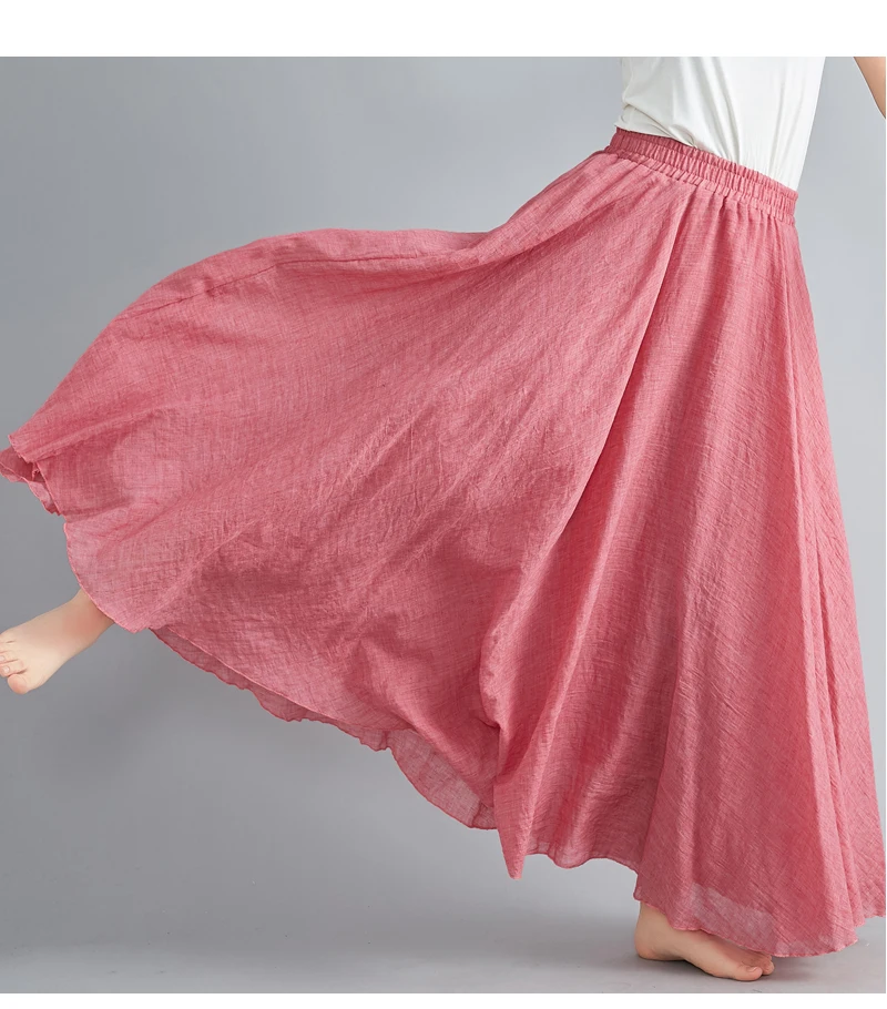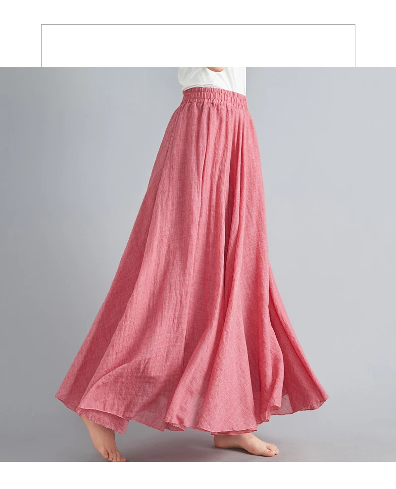 Fashion Solid Cotton Linen Women Skirts Maxi Elegant Harajuku Saia Casual Loose Long Skirt Ladies Clothes Faldas Ropa Mujer