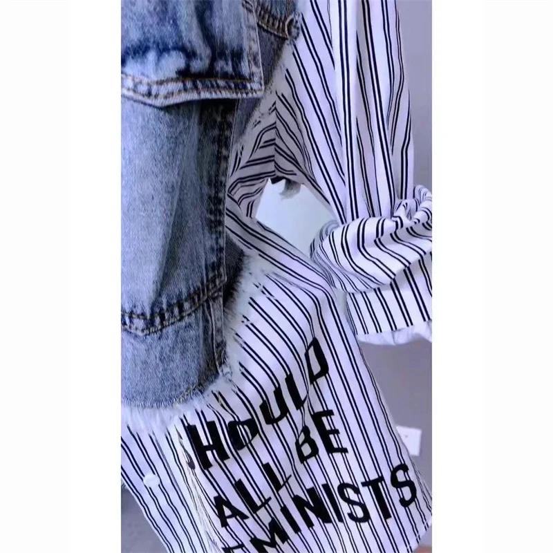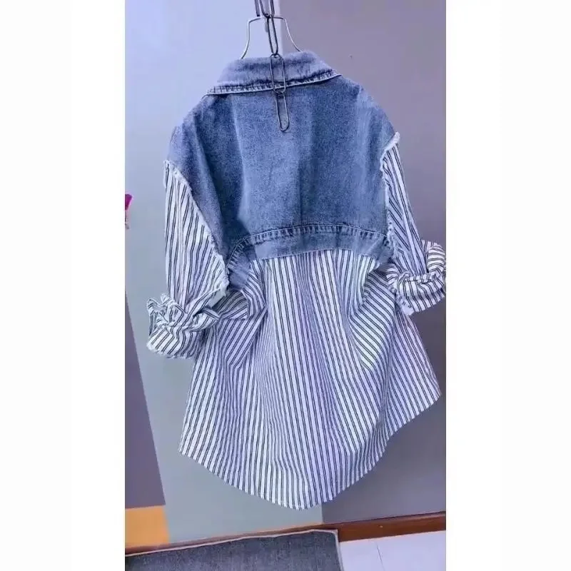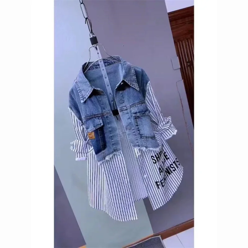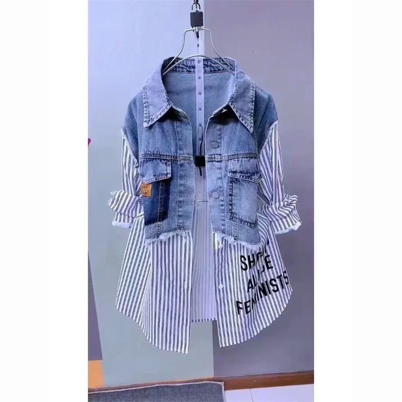 Fashion Striped Denim Jacket Women's Spring/Summer 2024 New Design Sense Stitching Women Jackets Temperament Coat Top