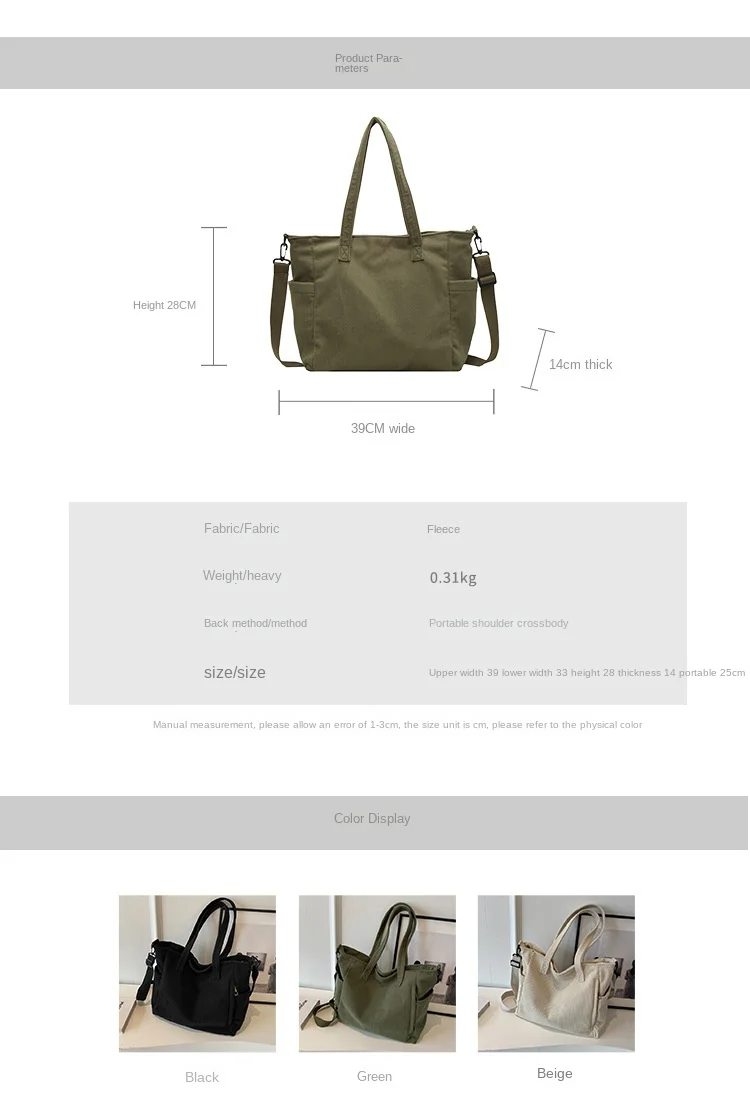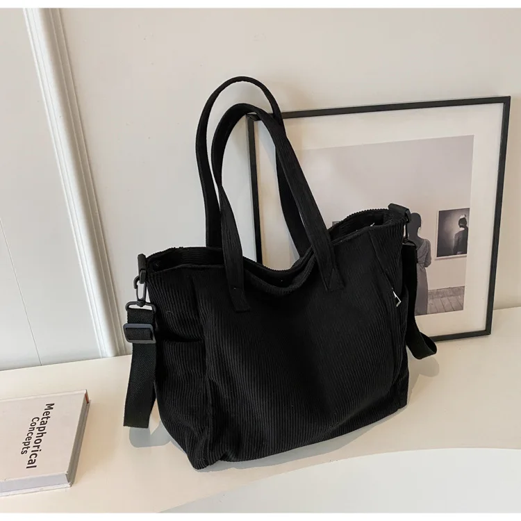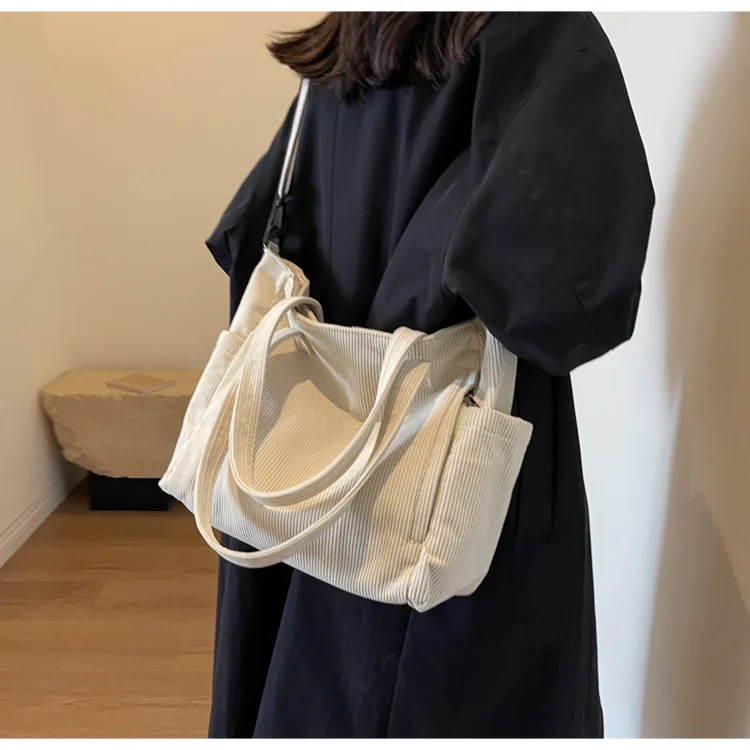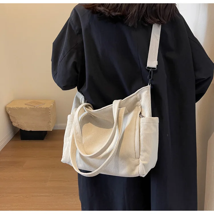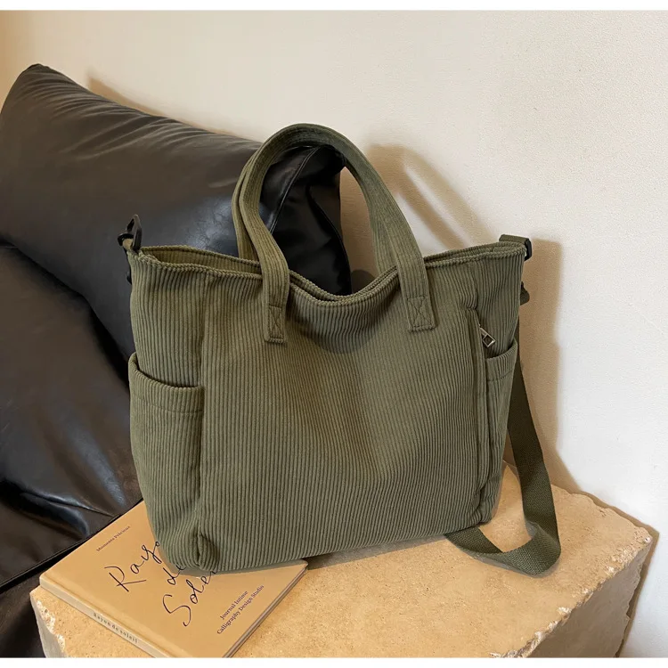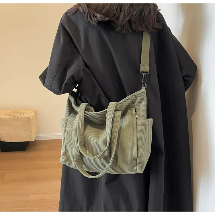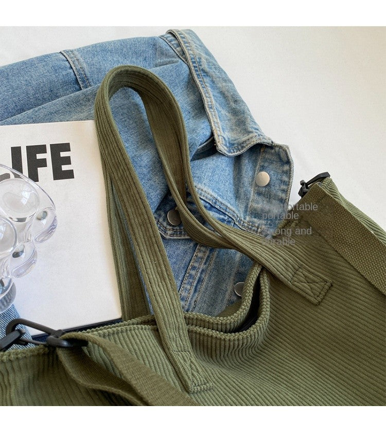 Fashion Versatile Shoulder Bag College Wind Commuting Corduroy Square BagUnisex Large Capacity Leisure Portable Crossbody Bag