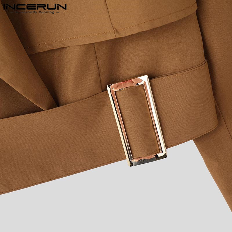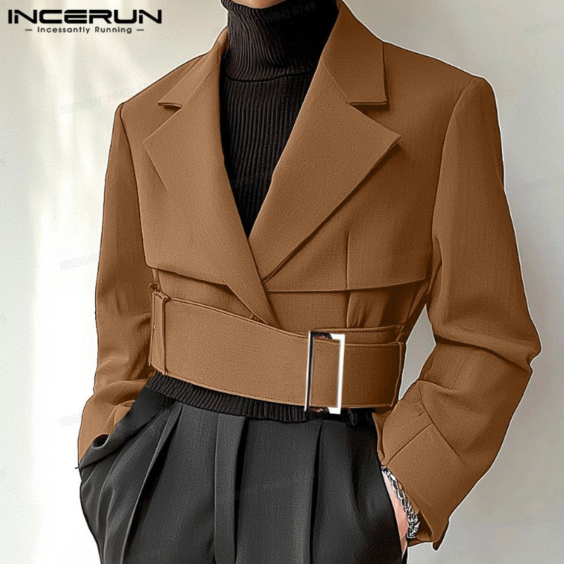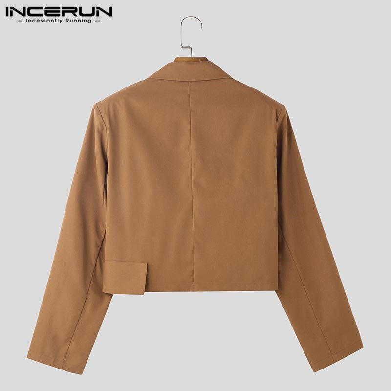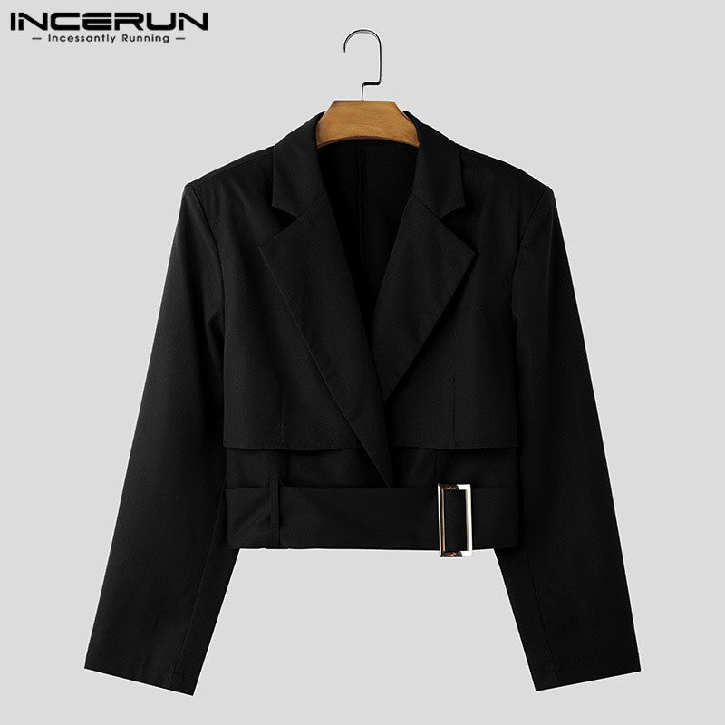 Fashion Well Fitting Tops INCERUN New Men Deconstruct Metal Buckle Suit Coat Casual Streetwear Cropped Long Sleeved Blazers 2025