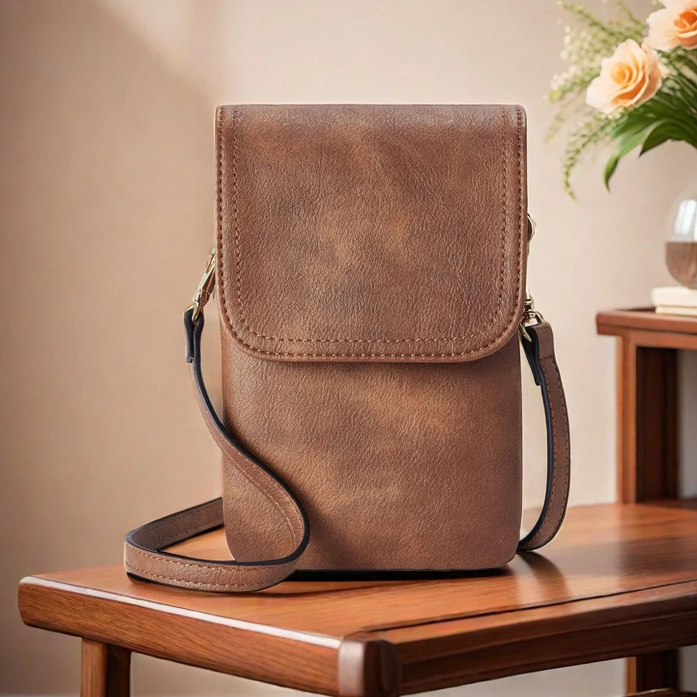Fashionable and minimalist PU leather women's crossbody bag designer mobile phone bag change small bag women's single shoulder c