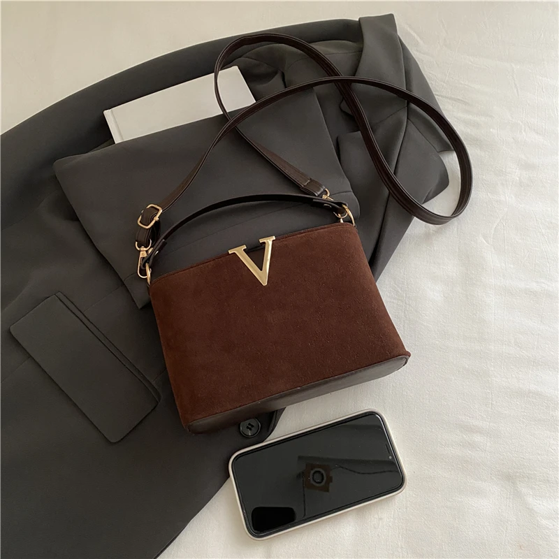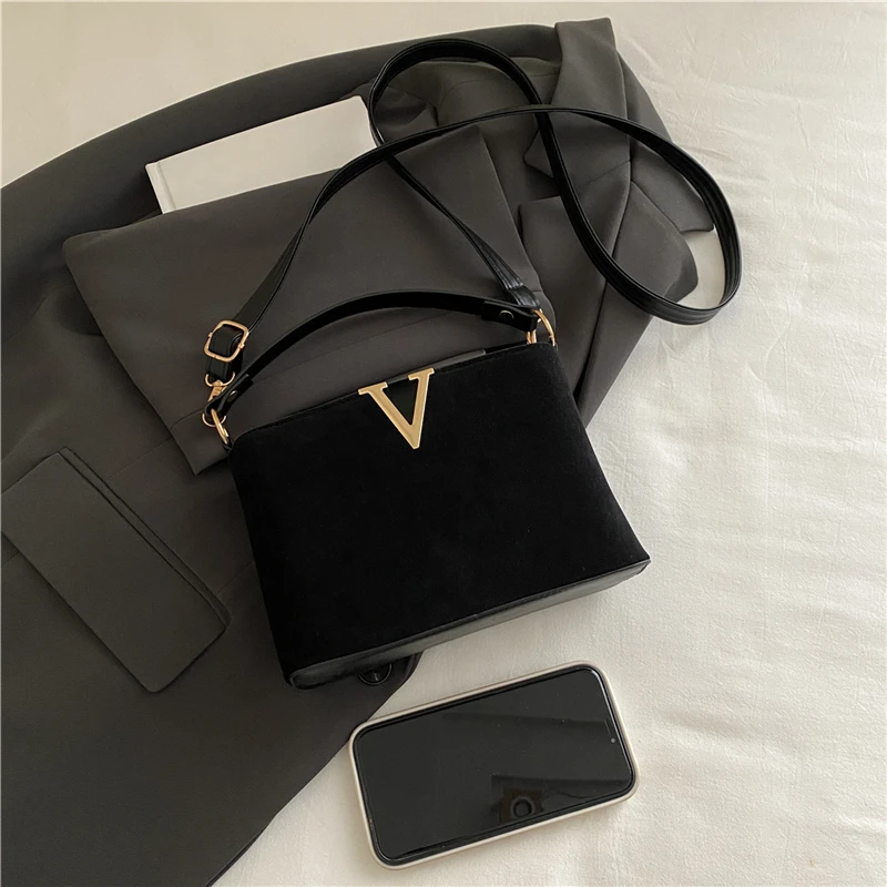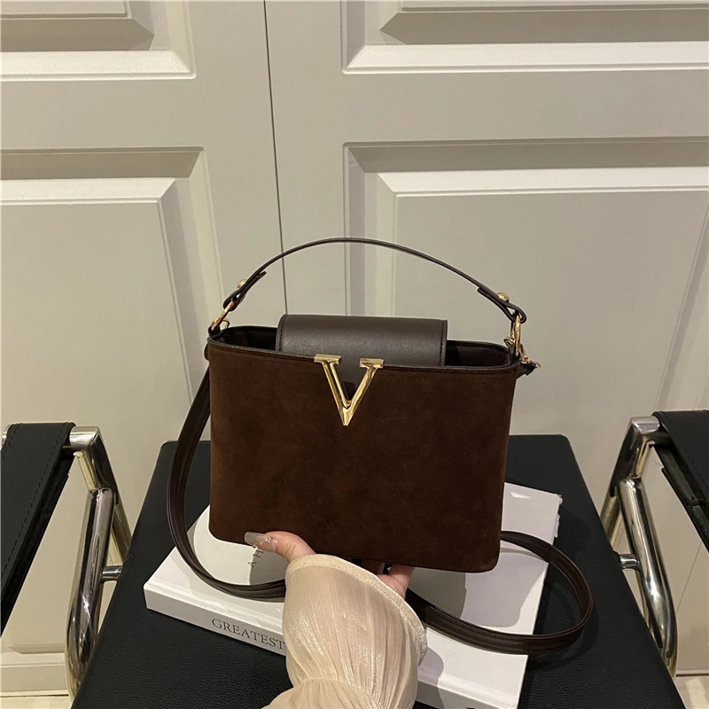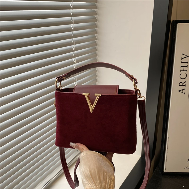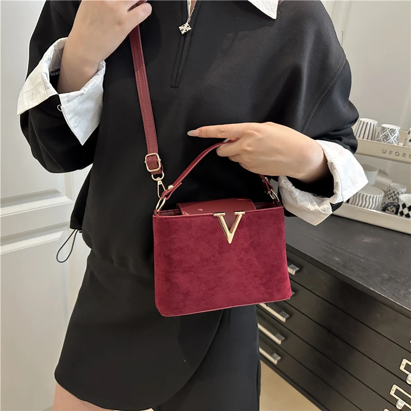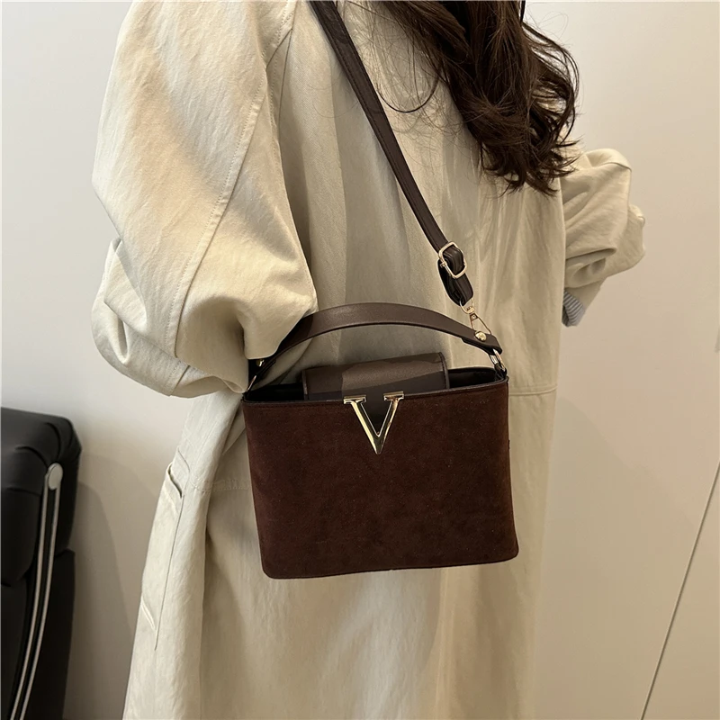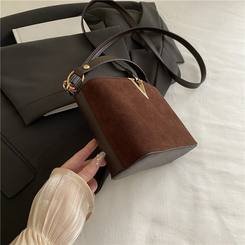 Fashionable Mini Suede Women's Bag, Faux Suede Tote Bag, Hardware Lock Buckle Decoration Handbag Purse Shoulder Cross Body Bags