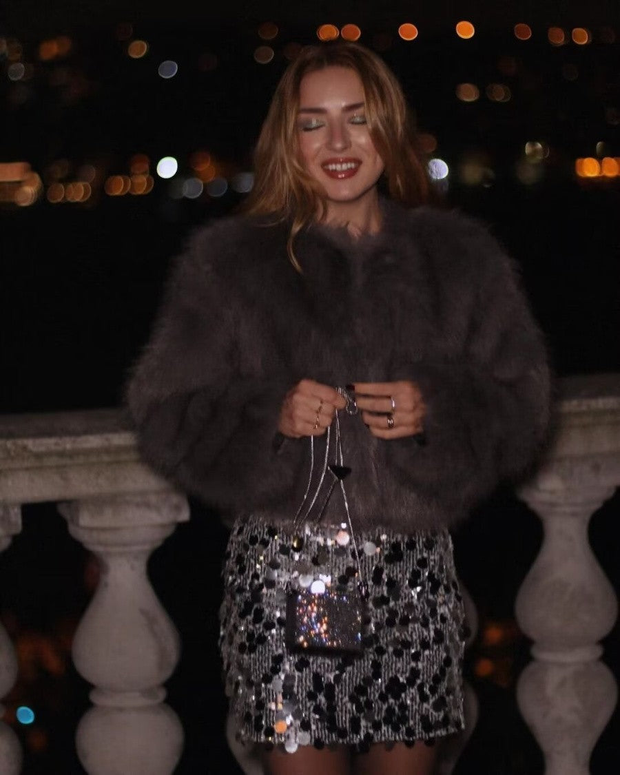 Faux fur jacket Traf Fall/Winter New Fashion Women's Faux Fur Effect Round Neck Long Sleeve Short Jacket 2025