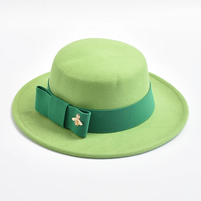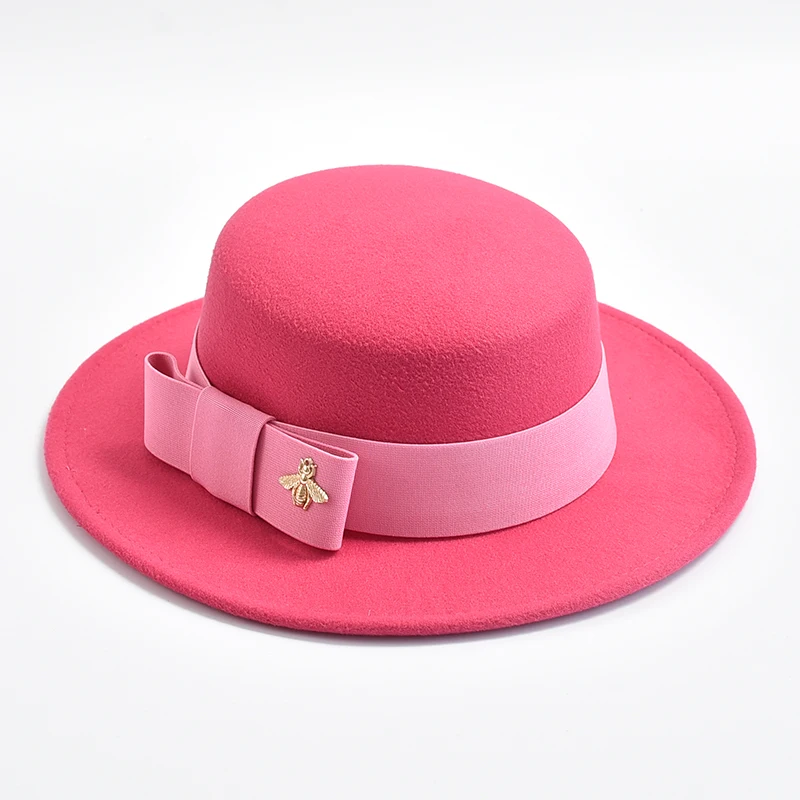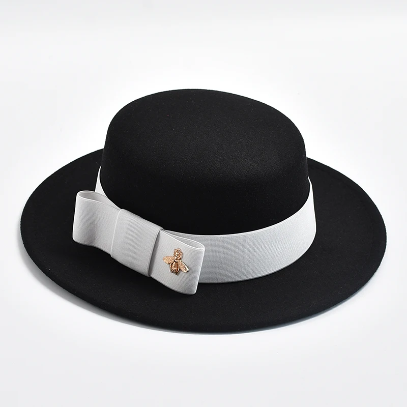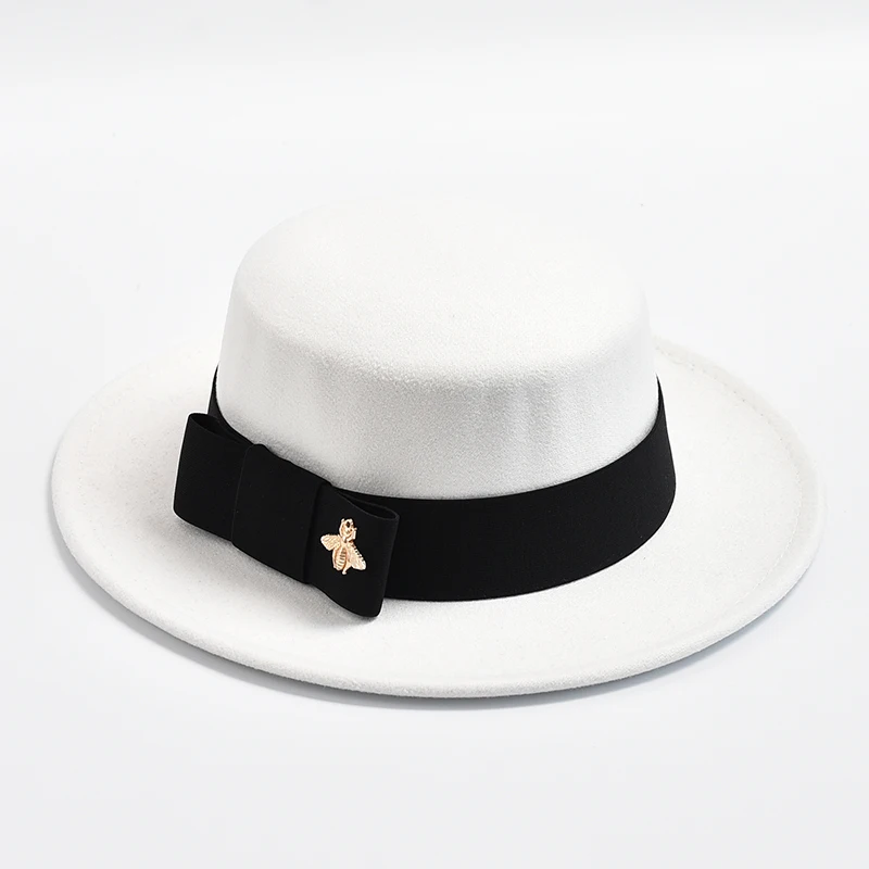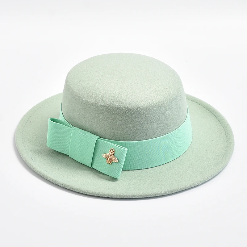 Fedora Hat for Women Fashion Formal Wedding Decorate Church Cap Flat Top Bow Party Jazz Hat Chapeau Femme