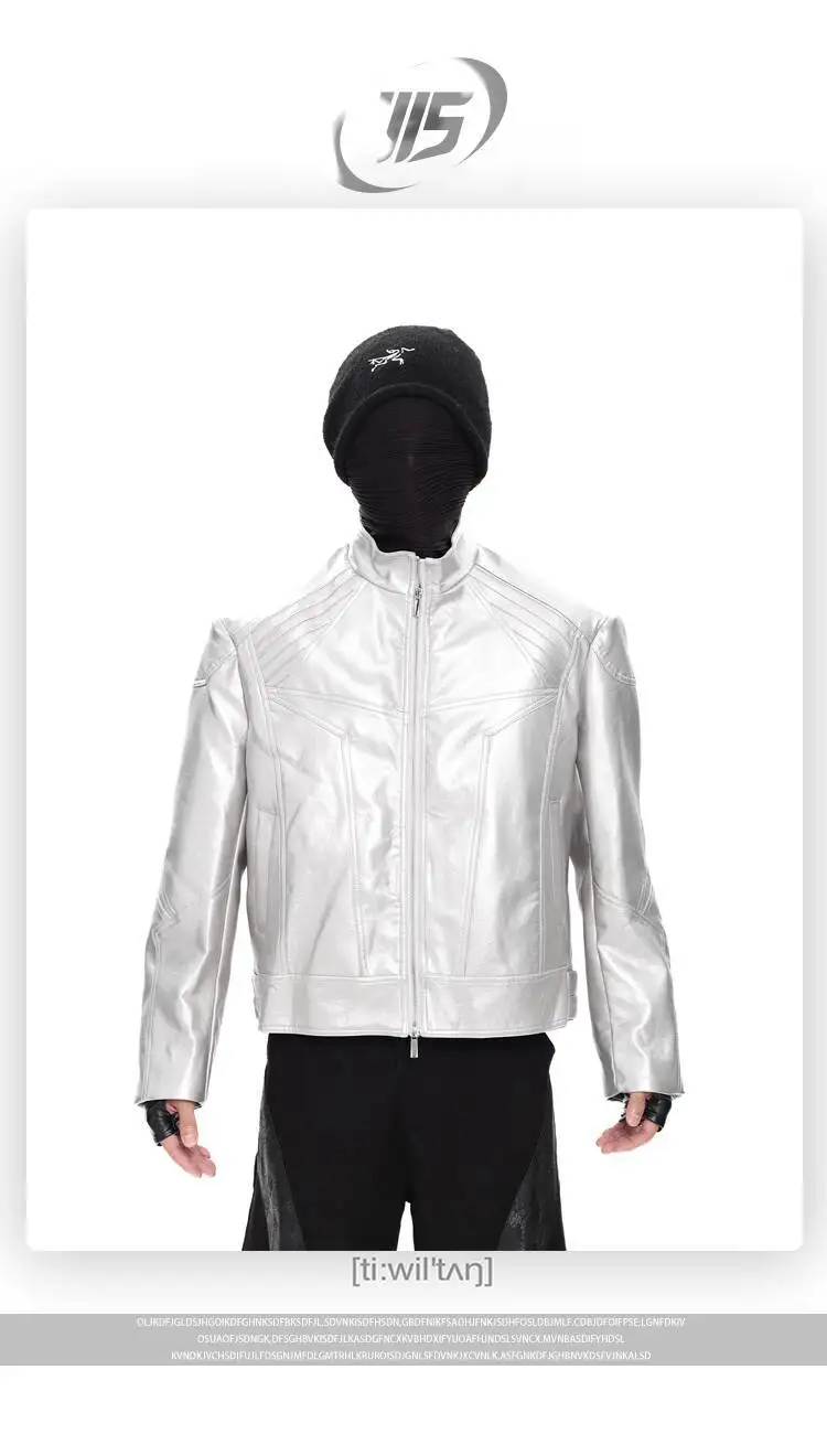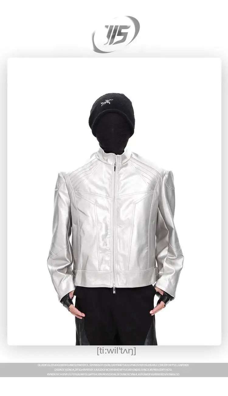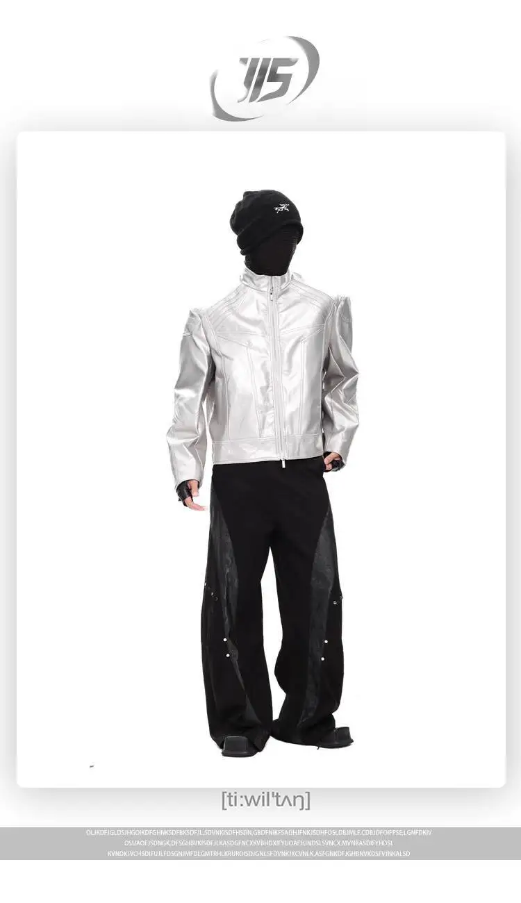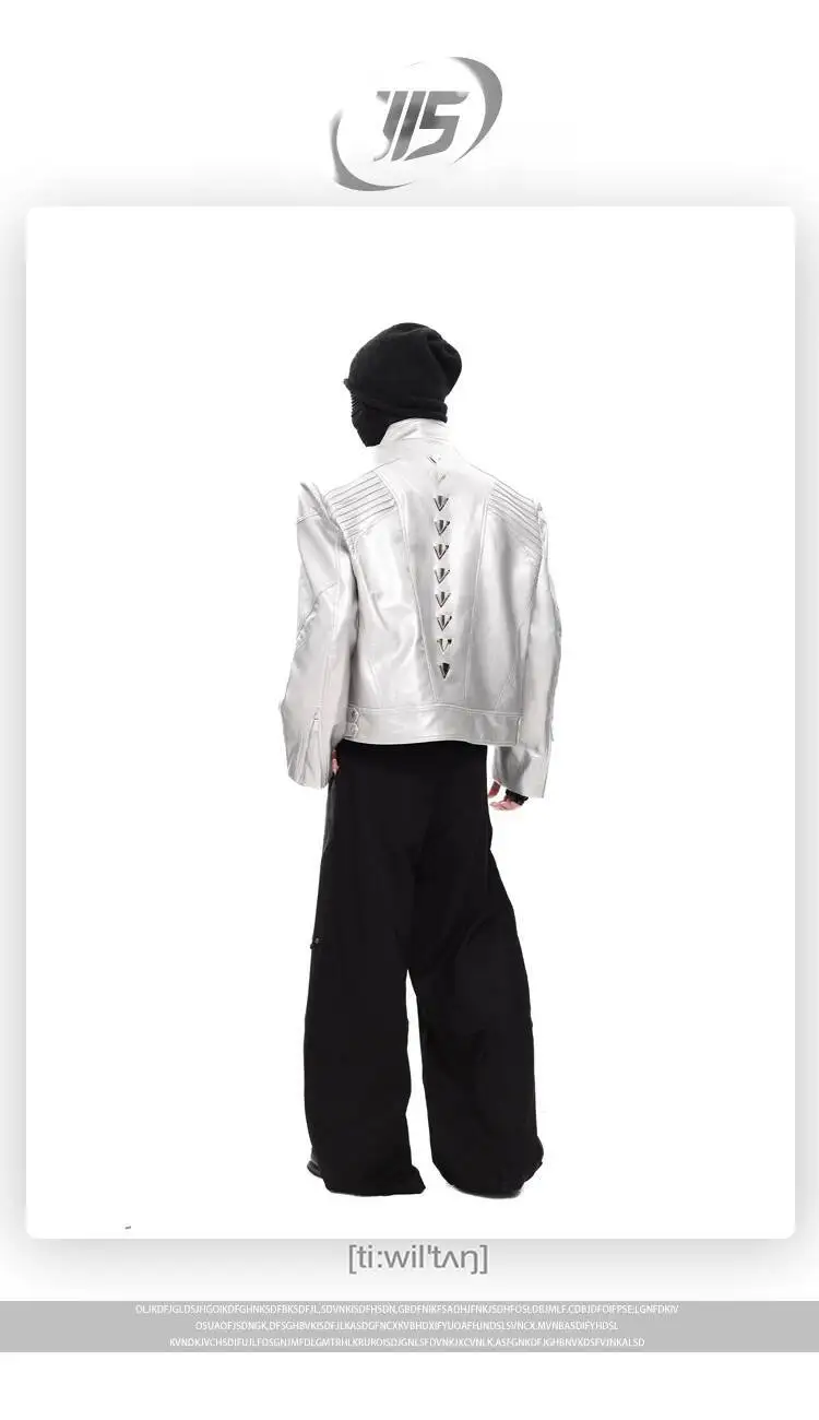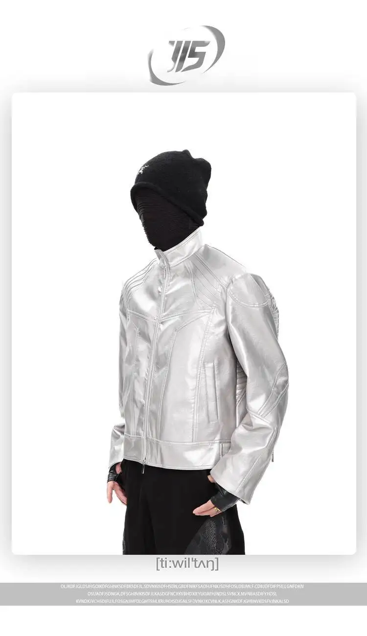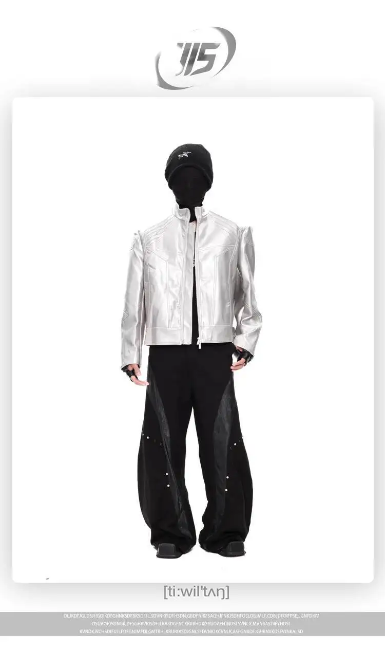 FEWQ Niche Design Men's PU Leather Coats Stand Collar Solid Color Zipper Metal Design Shoulder Pads Male Short Jacket 24K5931