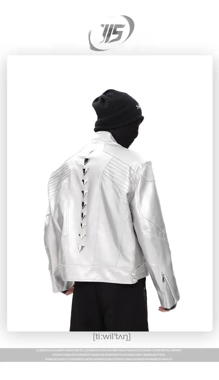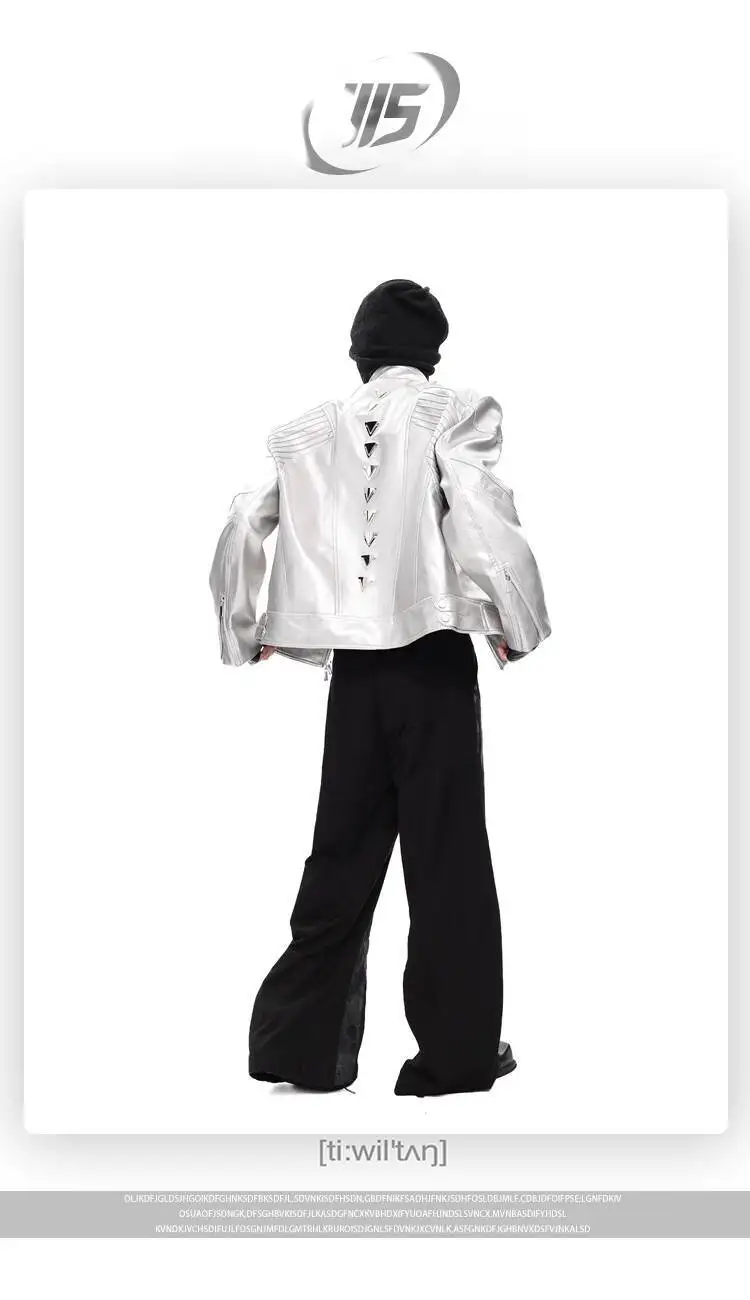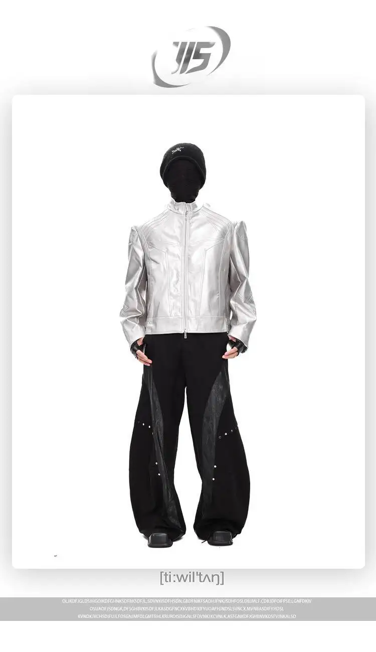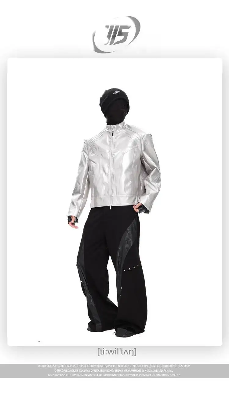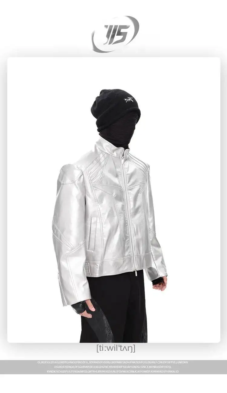 FEWQ Niche Design Men's PU Leather Coats Stand Collar Solid Color Zipper Metal Design Shoulder Pads Male Short Jacket 24K5931