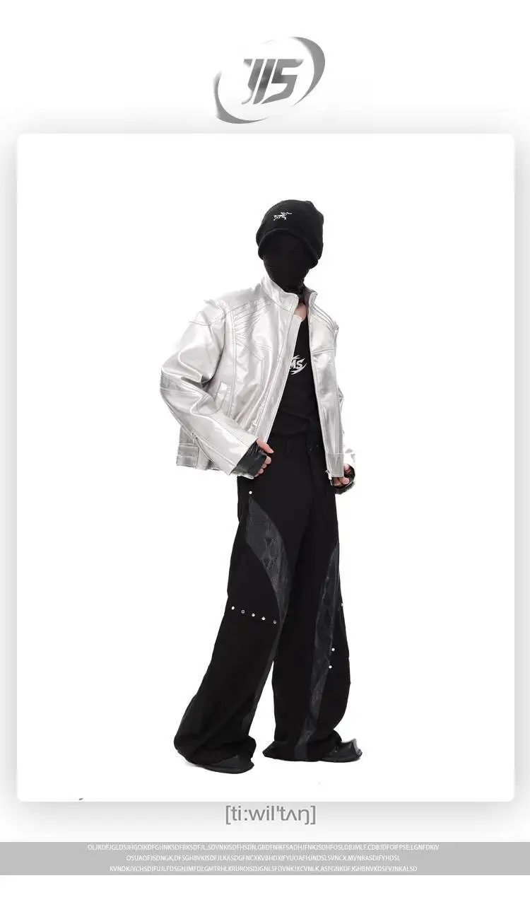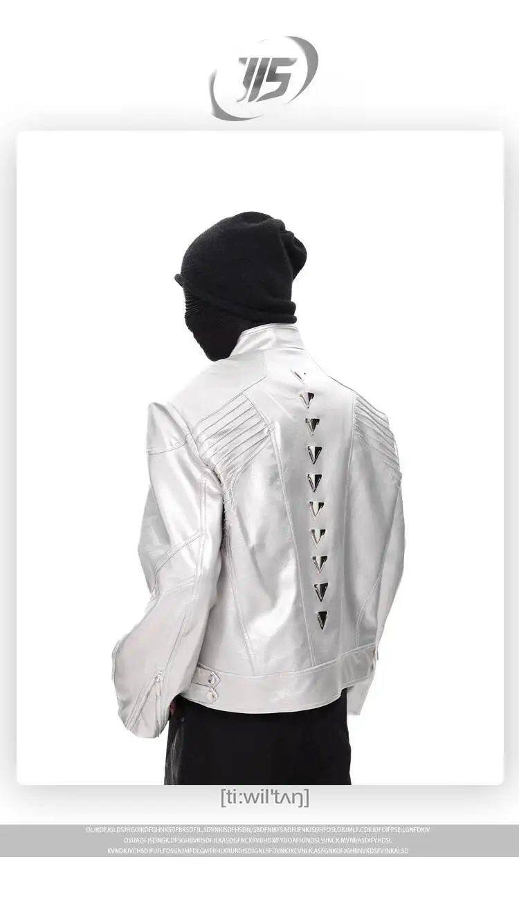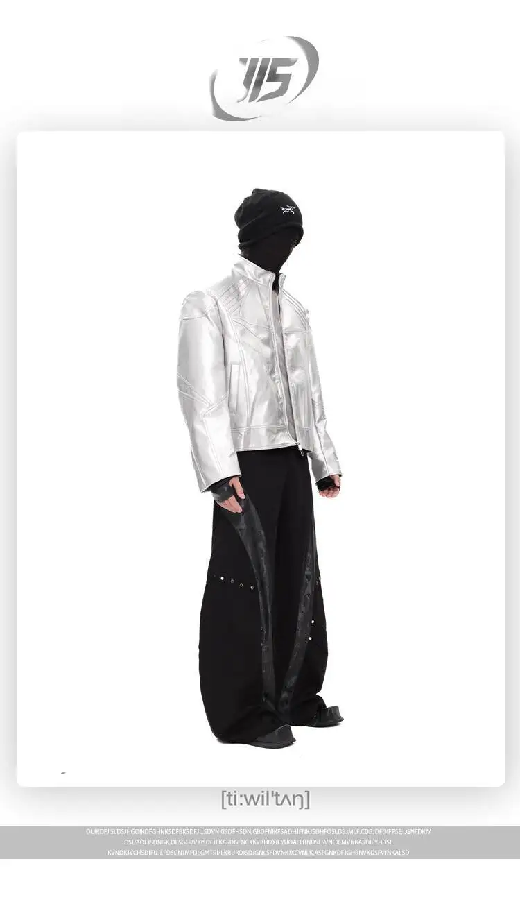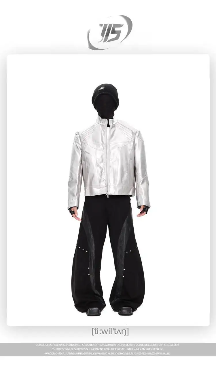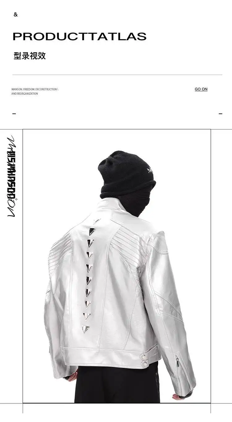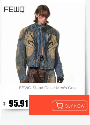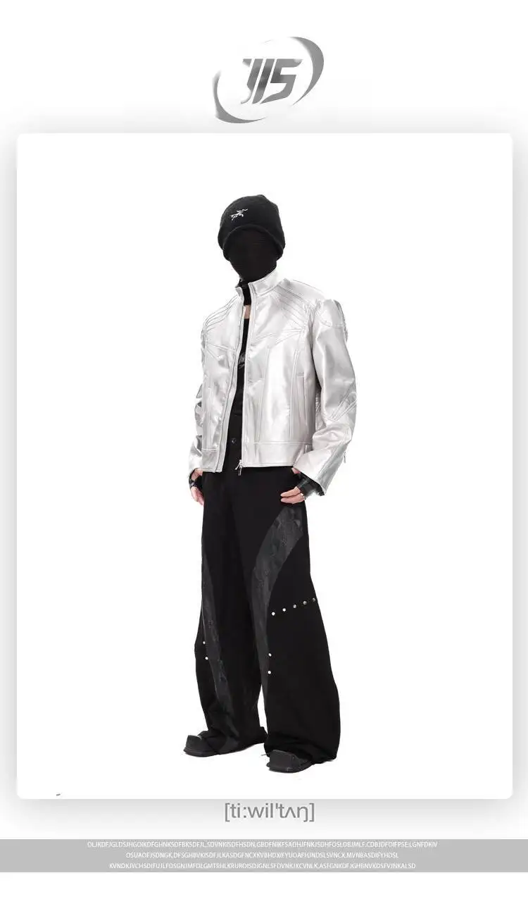 FEWQ Niche Design Men's PU Leather Coats Stand Collar Solid Color Zipper Metal Design Shoulder Pads Male Short Jacket 24K5931