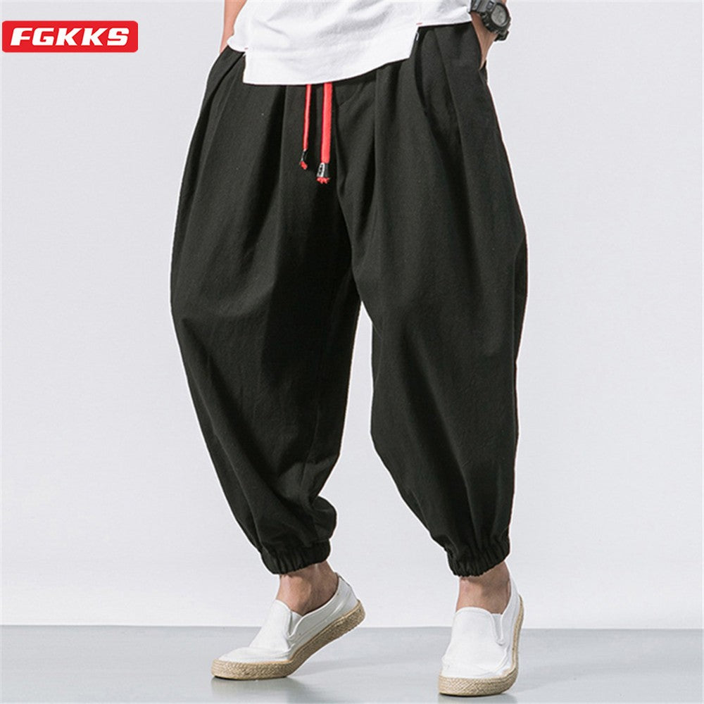 FGKKS New Oversize Men Loose Harem Pants Autumn Chinese Linen Overweight Sweatpants High Quality Casual Brand Trousers Male