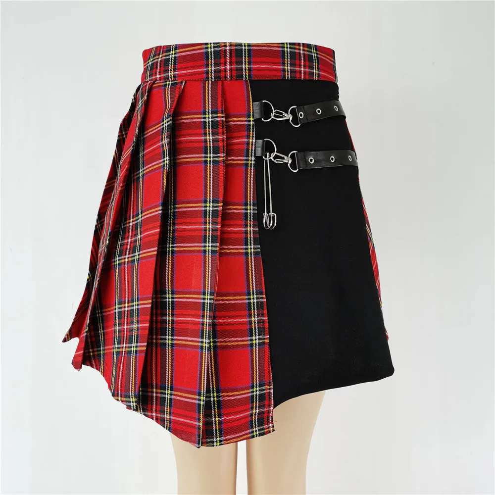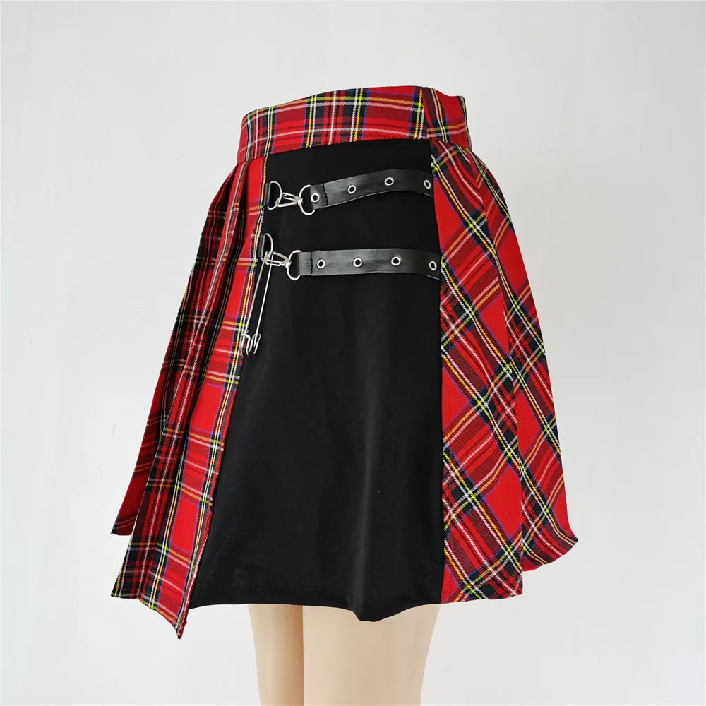 FICHOR Mall Goth Gothic Lace Ruffle Mini Skirts Womens Harajuku Fairy Grunge Pink Plaid Pleated Skirt Japanese Lolita Streetwear
