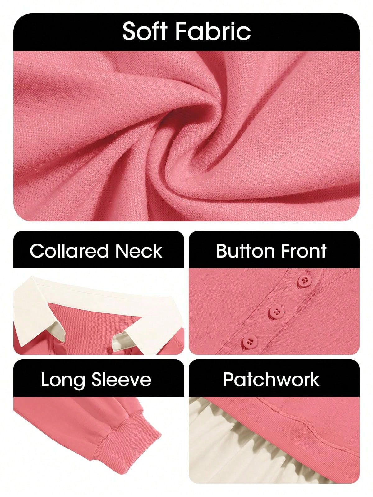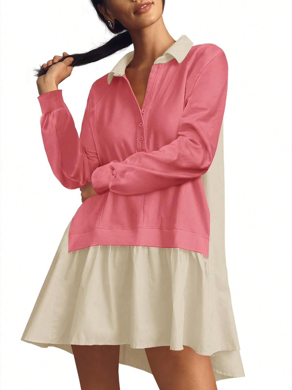 Fisoew Womens Grunge Aesthetic Dress Long Sleeve V Neck Oversized Pullover Loose Fit Mini Tennis Dress Y2K Style