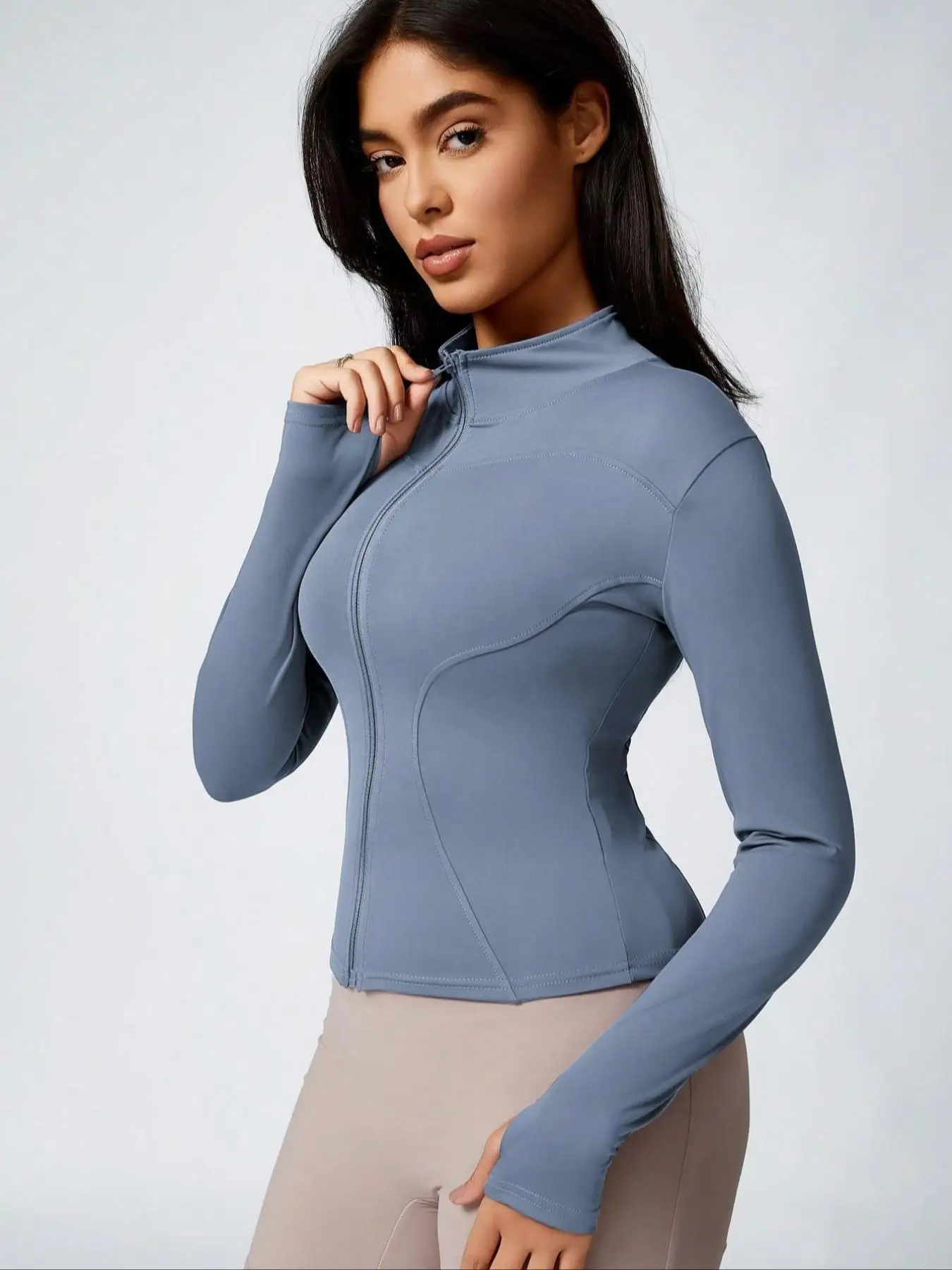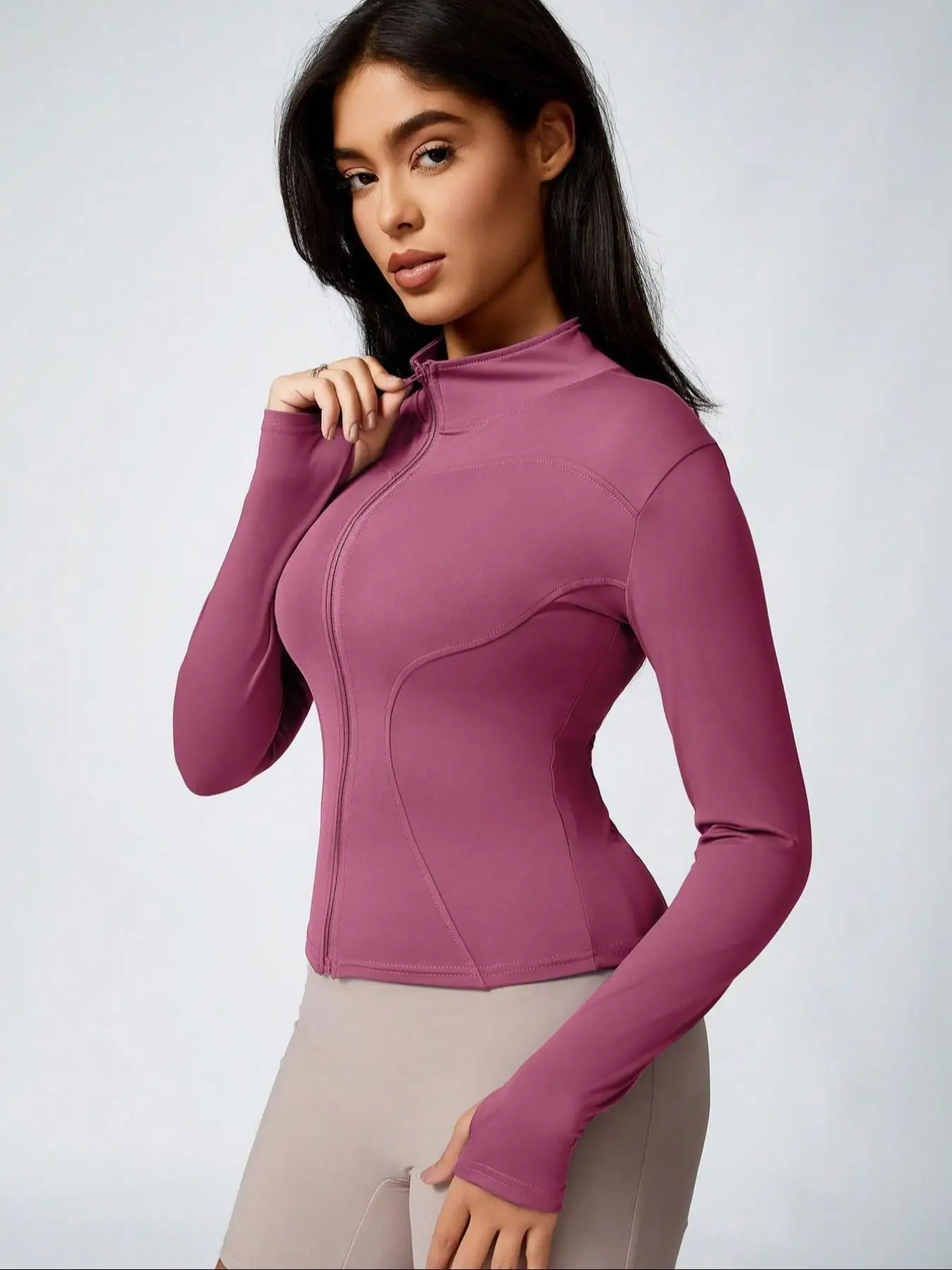 Fitfemme Women's Slim Fit Full - Zip Long - Sleeve Quick - Dry Breathable Athletic Workout Jacket