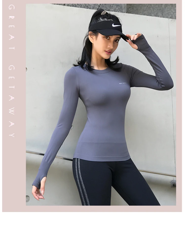 Fitness Tops Women Tight Sports Long Sleeve Yoga Clothing Running Training Clothes Gym Workout Shirt Comfortable Training Cloth