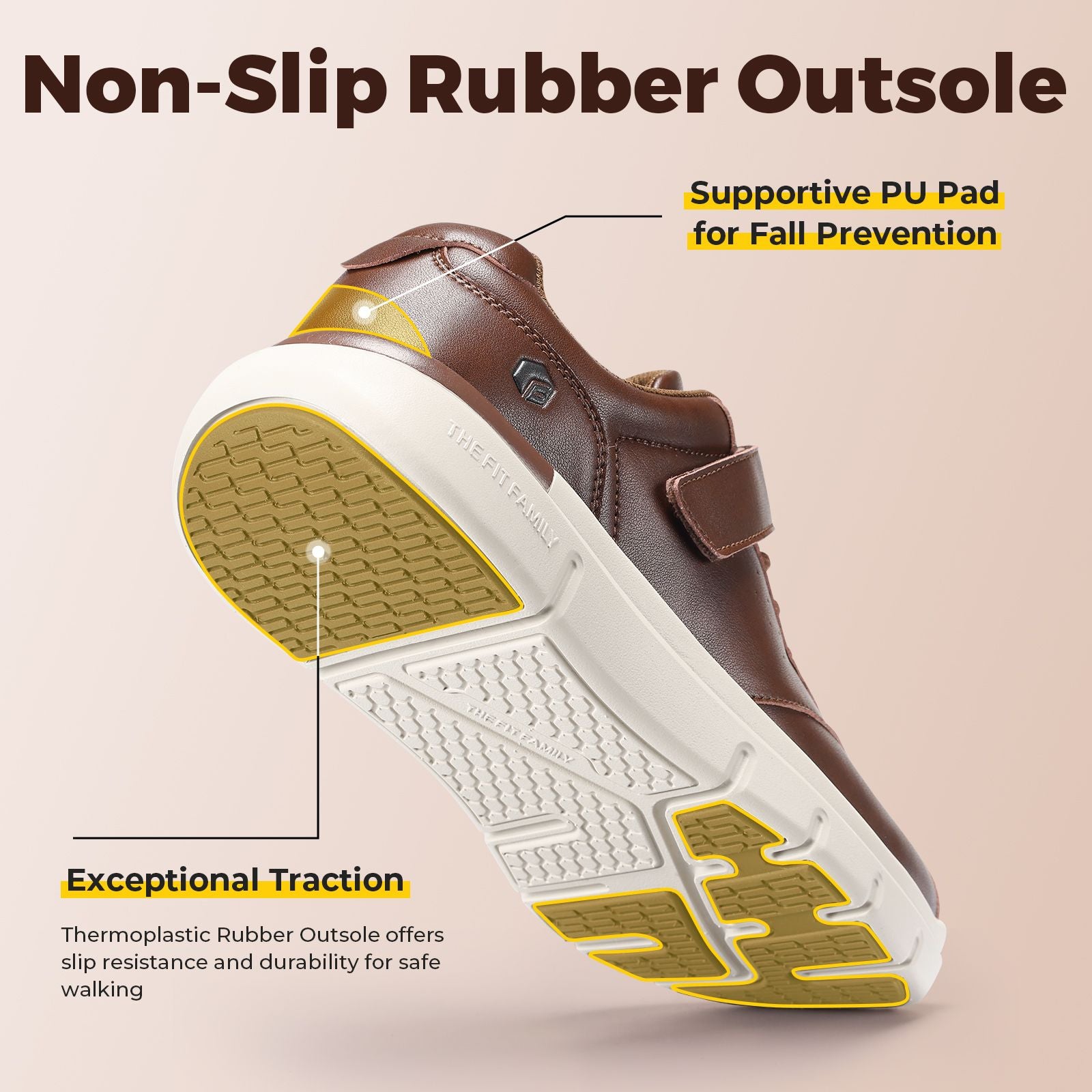 Fittington Diabetic Shoes For Men Extra Wide Width Velcro Walking Shoes Water-Repellent Slip On Leather Sneakers For Diabetic S