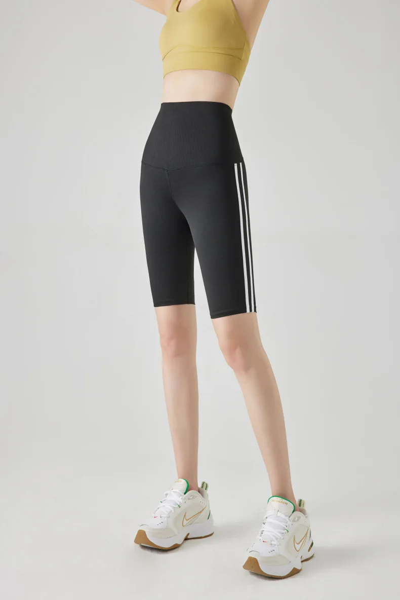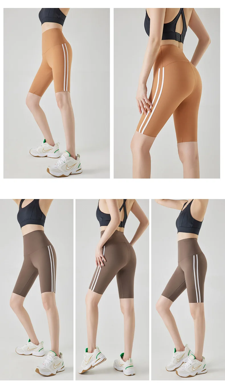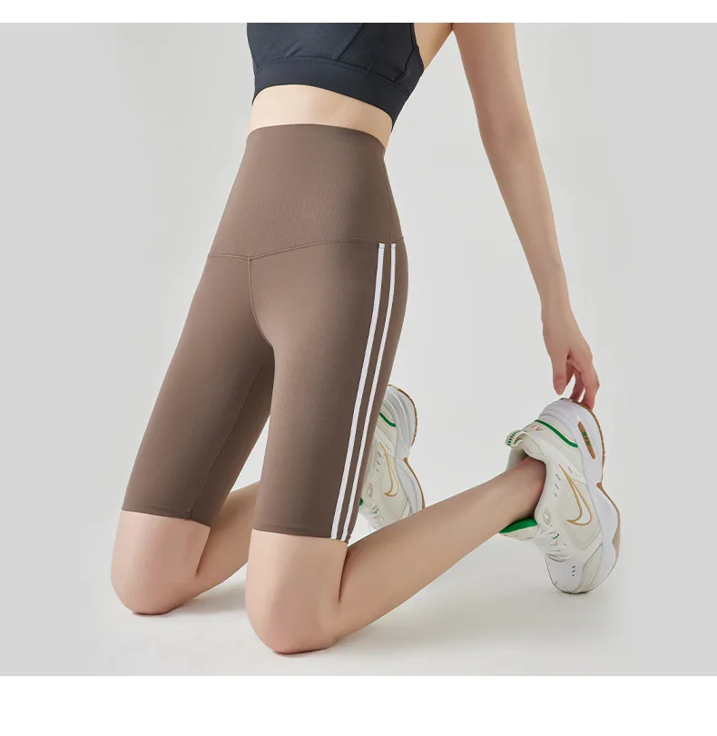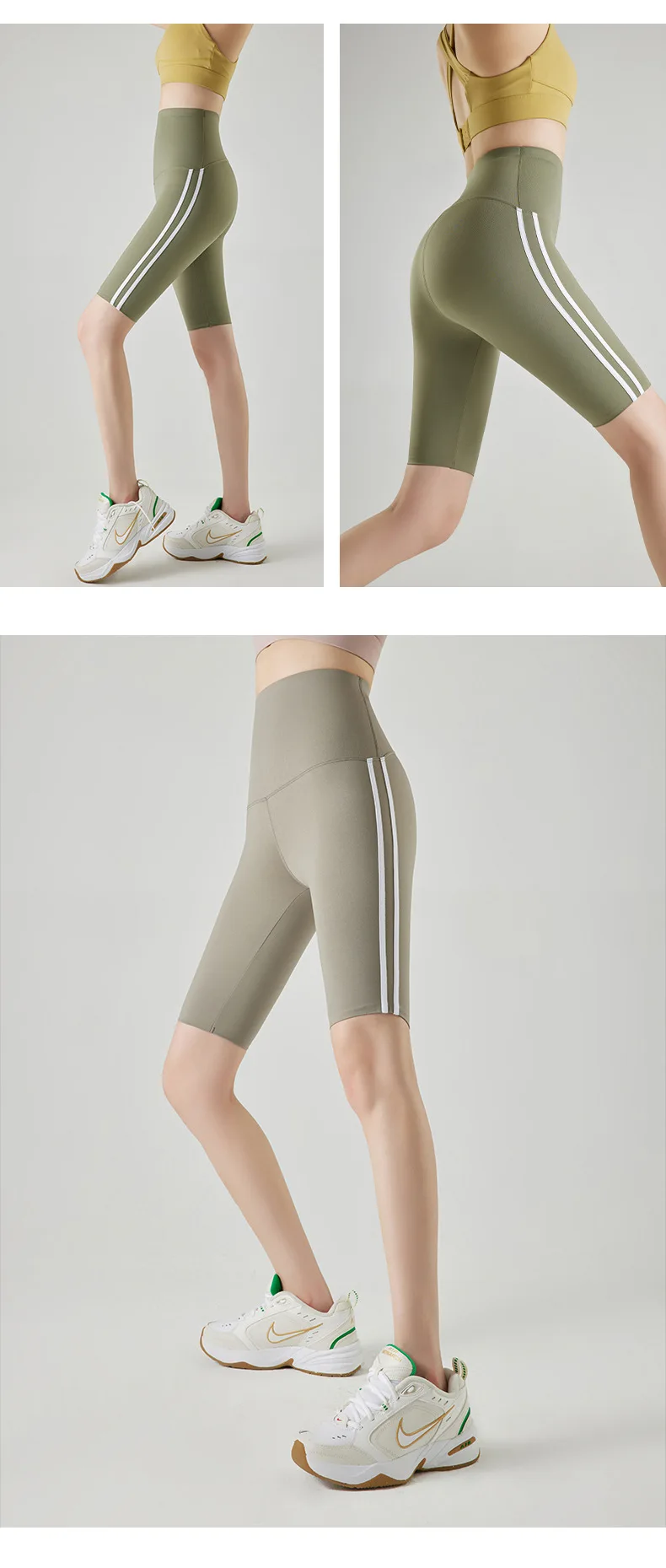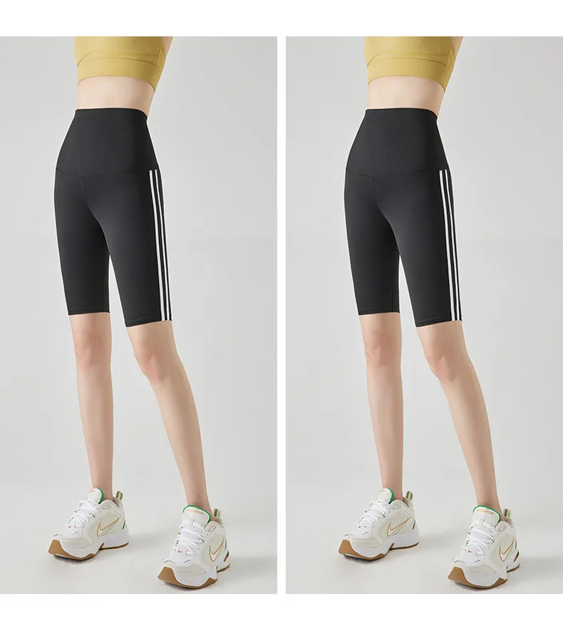 Five-point Summer Versatile Pants Side Stripe Sports Shark Pants Women's Outerwear Long Pants High Waist Seamless Barbi