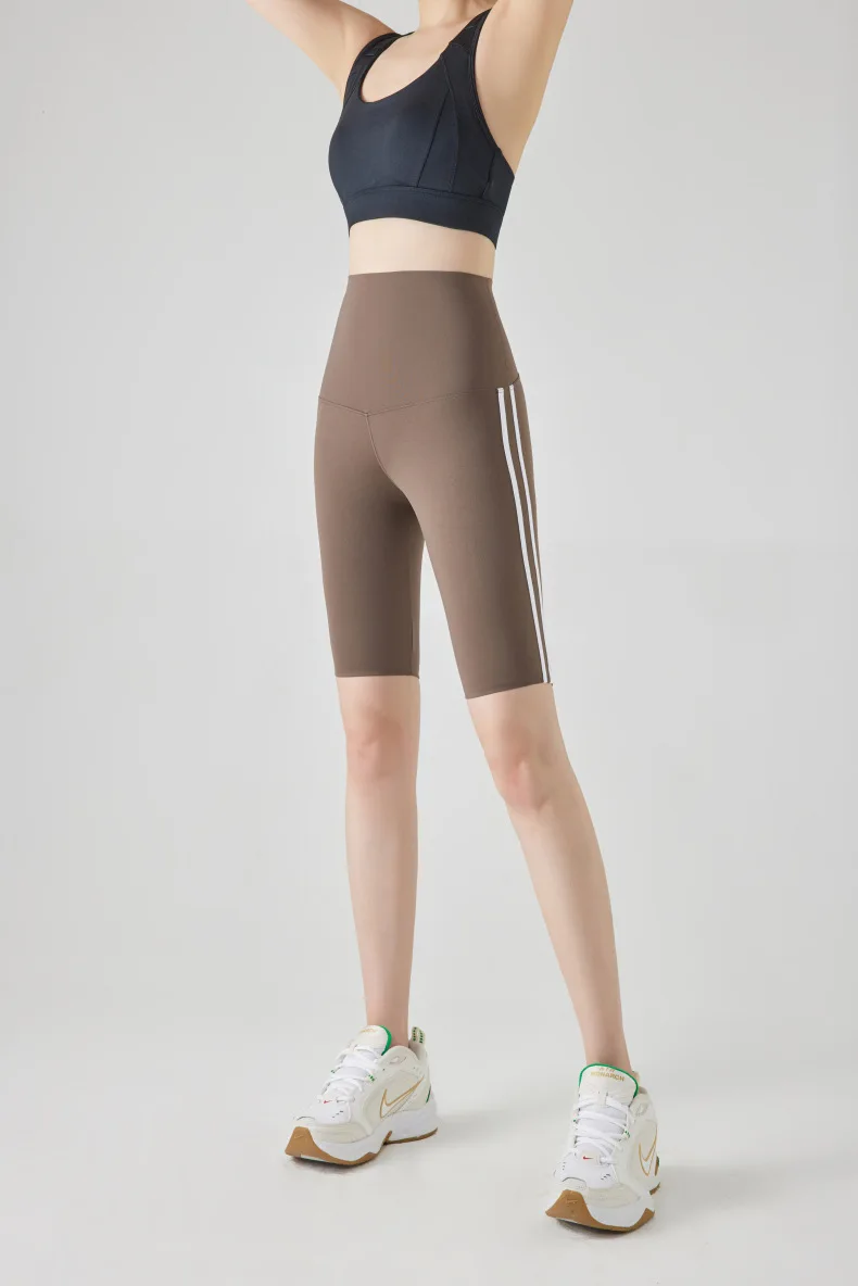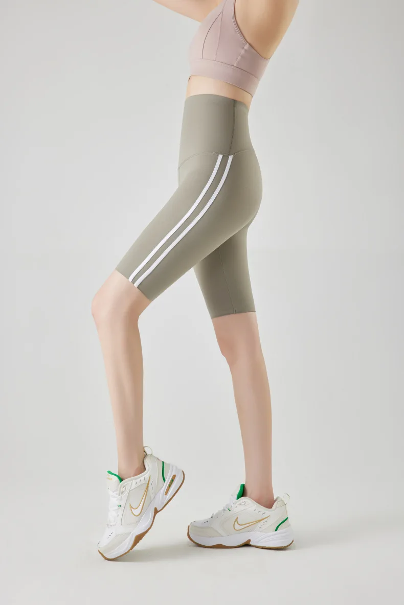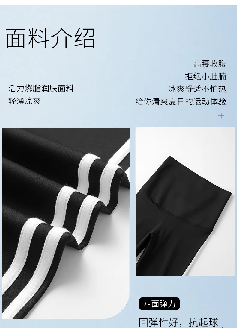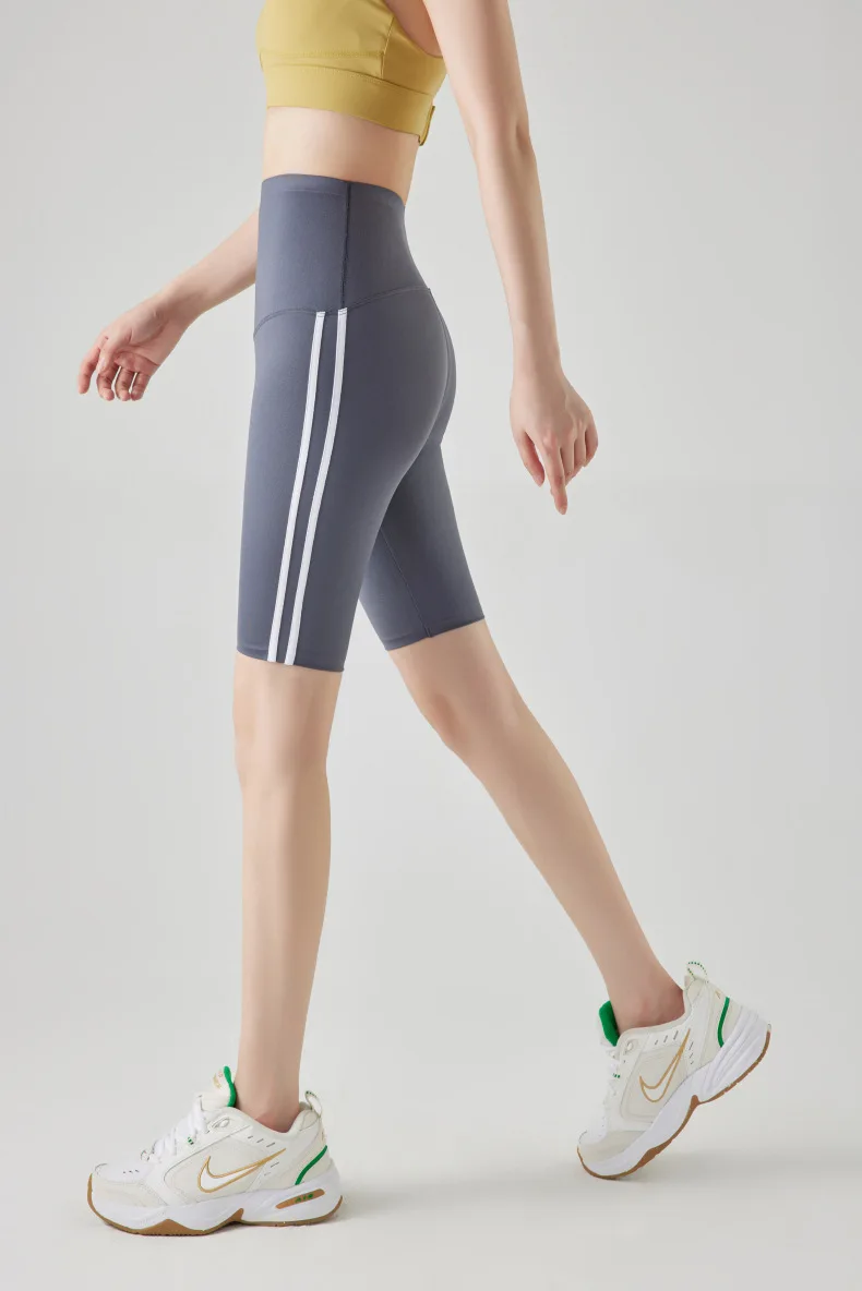 Five-point Summer Versatile Pants Side Stripe Sports Shark Pants Women's Outerwear Long Pants High Waist Seamless Barbi