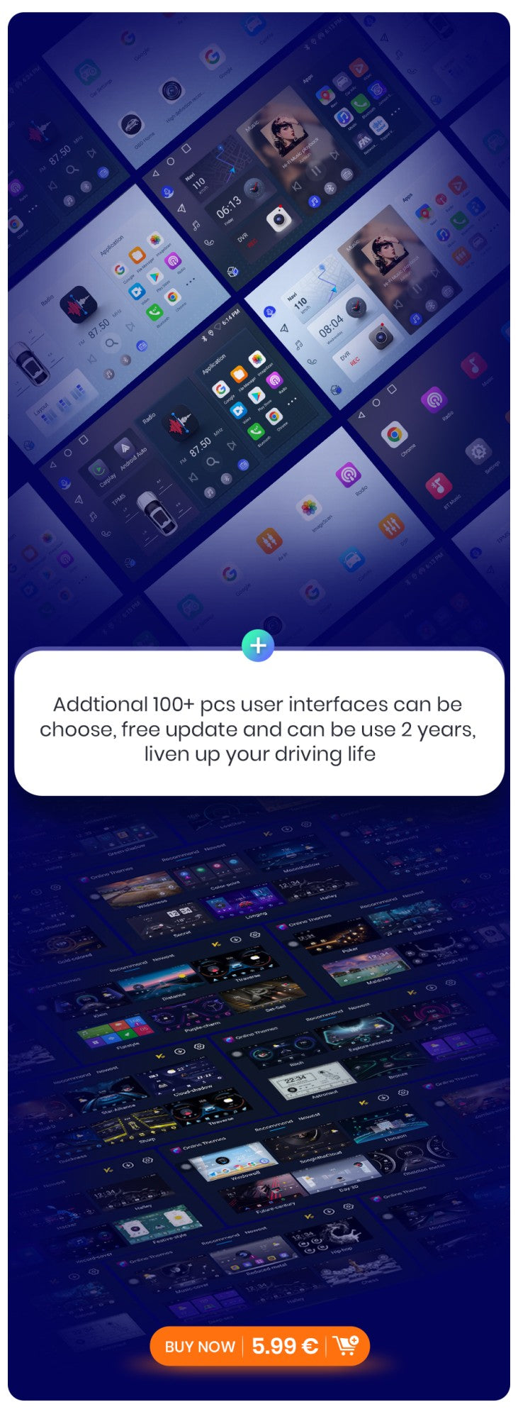 >>4. IPS Display Car Head Unit: This car radio features a IPS display with resolution of 1280*720, which brings better color accuracy, contrast,and brightness. Enjoy immersive visual experience and easy operation on the 9 Inch big screen. Comes with UI themes that you can choose from, support day and night model, provide you a safer & comfortable driving experience especially at night.
