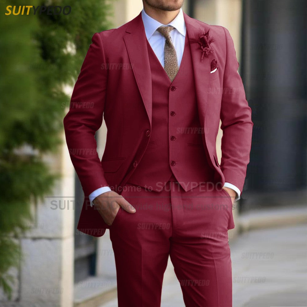Formal Banquet Business Suit Sets For Men Wedding Party Grooms Elegant Outfits Fashion Prom Slim Fit Blazer Vest Pants 3 Pieces