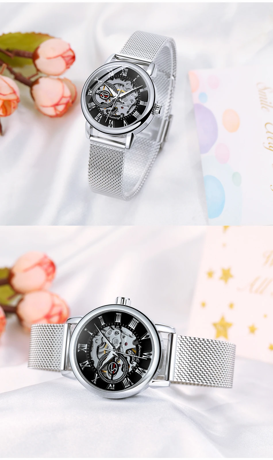 Forsining 099L Girl Bracelet Mechanical Watch With Manual Hand Wind Mechanical Wristwatch Mesh strap Female Watch Reloj Mujer