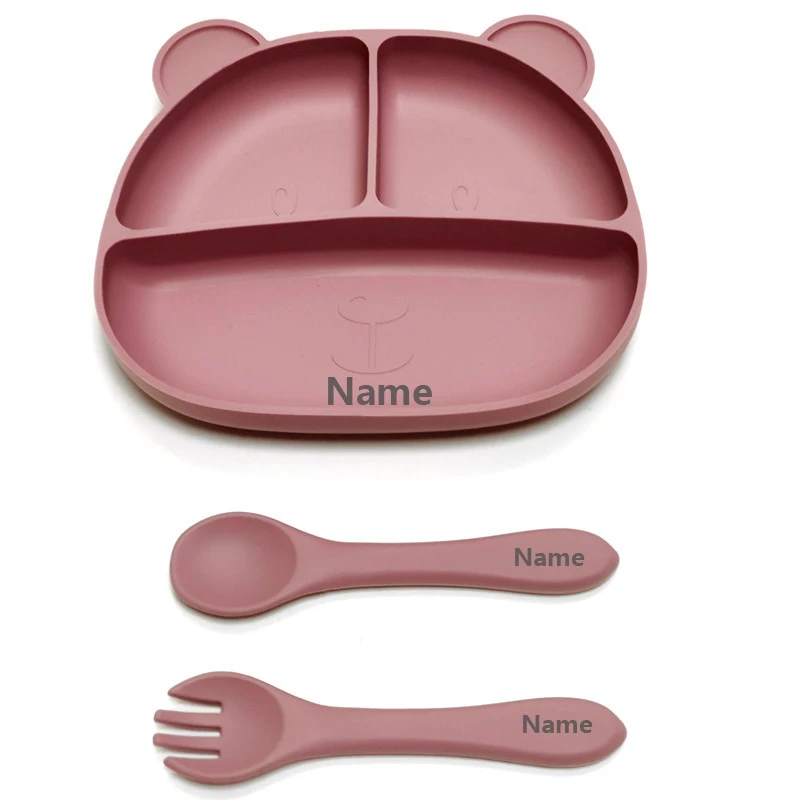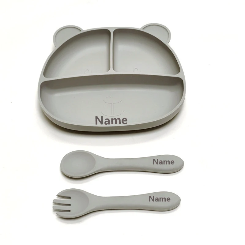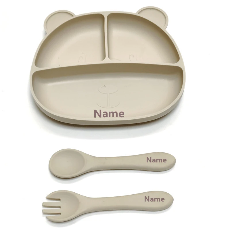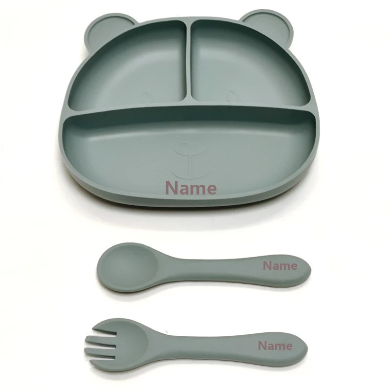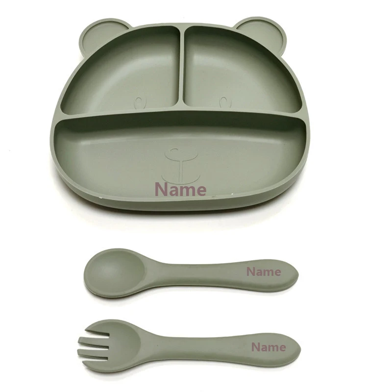 Free Name Printing Baby Fork-Spoon Combo Silicone Plate Children's Tableware Soft Fork-Spoon for Baby Food