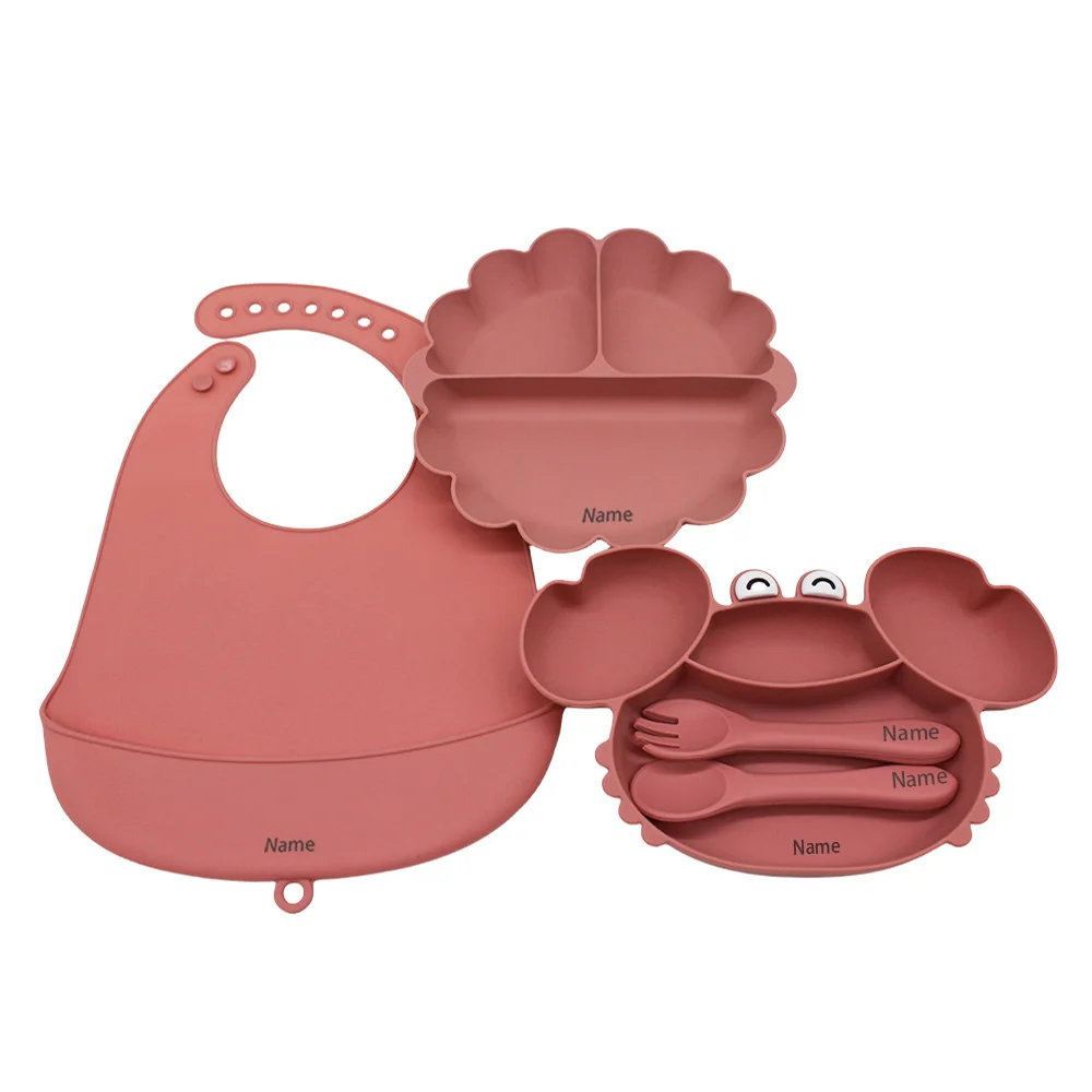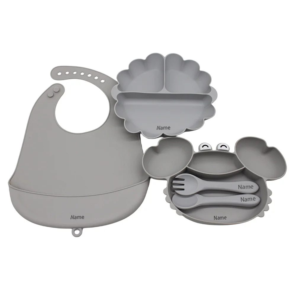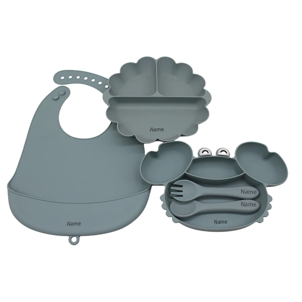 Free Name Printing Children's Tableware Set: Bib, Plate, Fork, Spoon - Silicone Material Personalized Gift