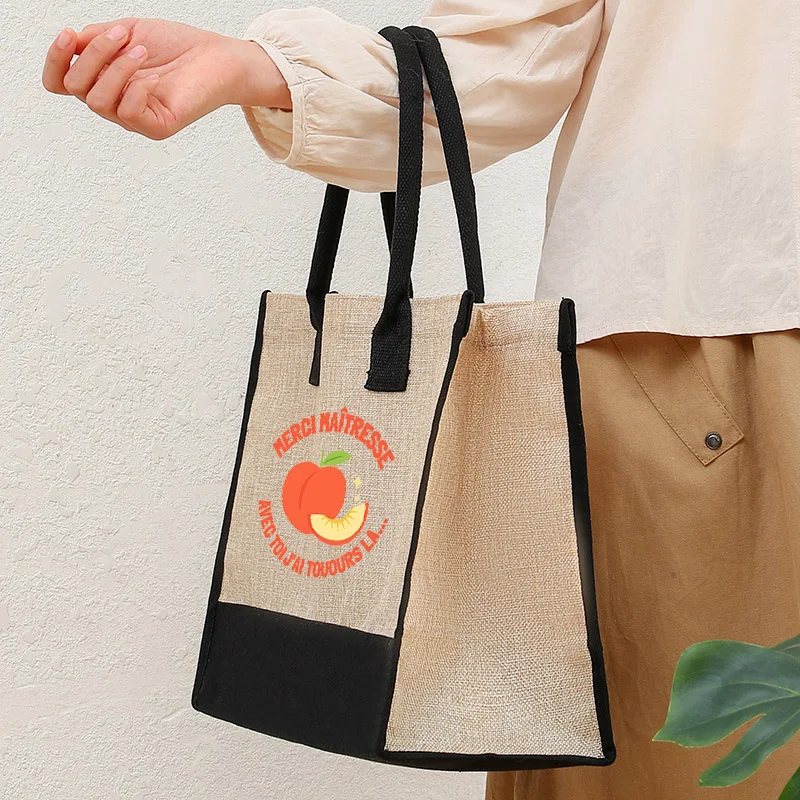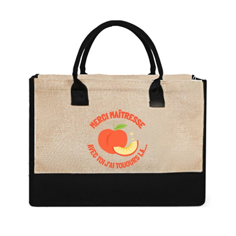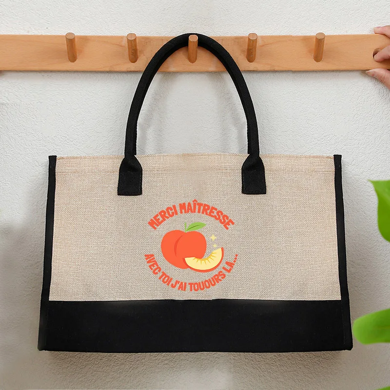 French Quote Peach Print Canvas Tote Bag Teacher Gift Beach Bags Casual Shoulder Bag Women Daily Handbag