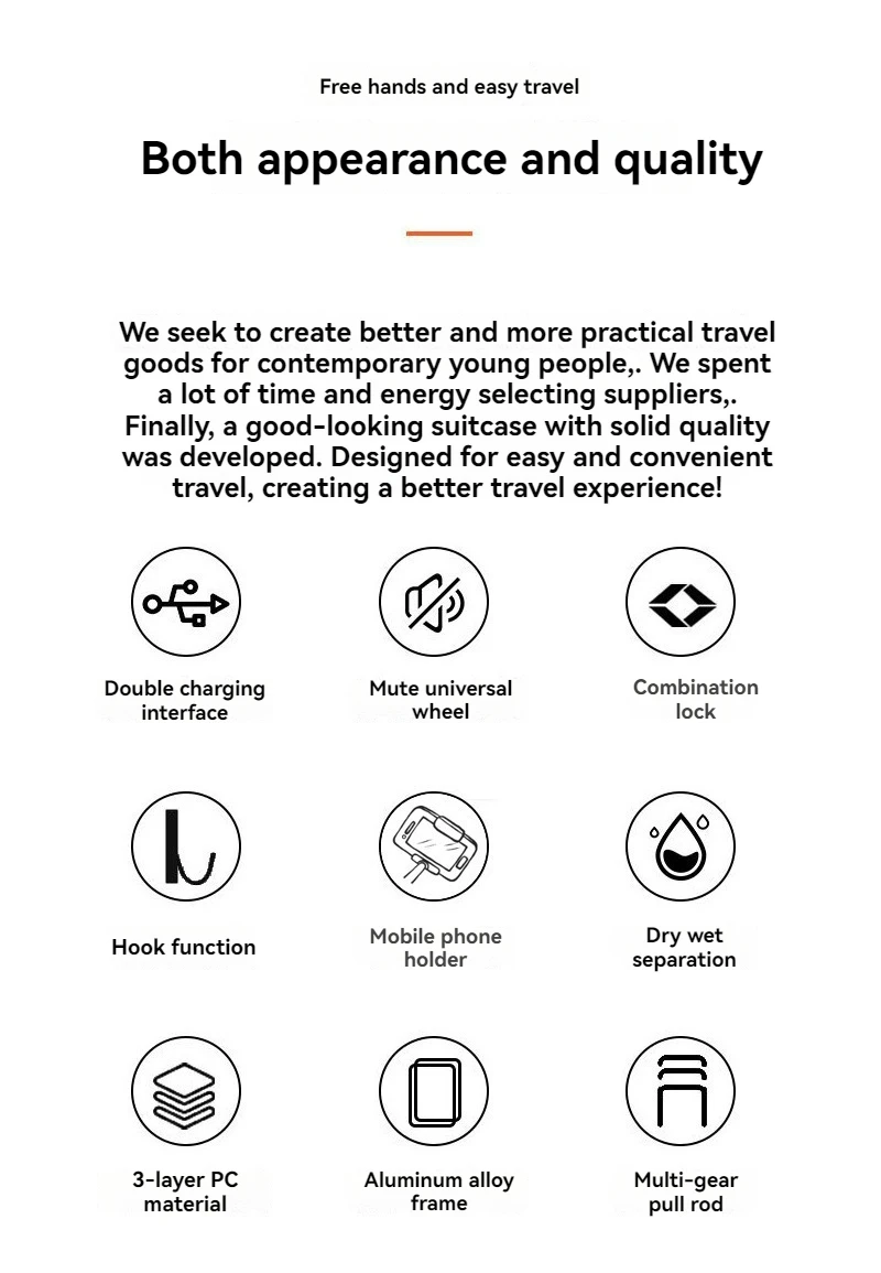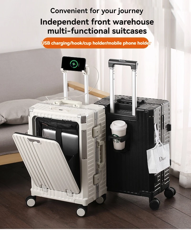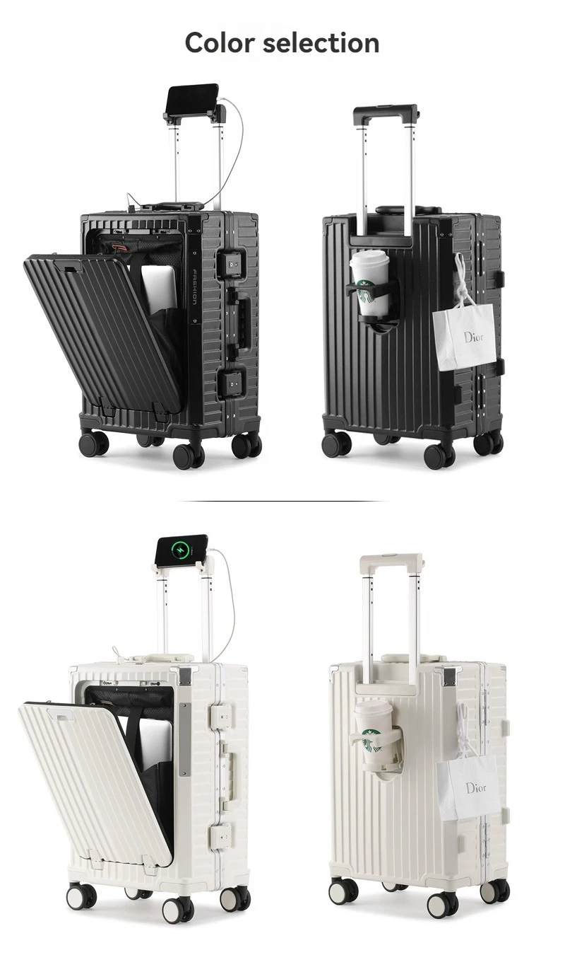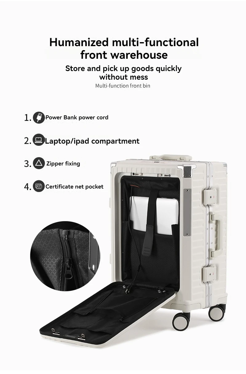 Front opening luggage compartment, PC aluminum frame, 20 inch boarding case, password travel case, luggage trolley case