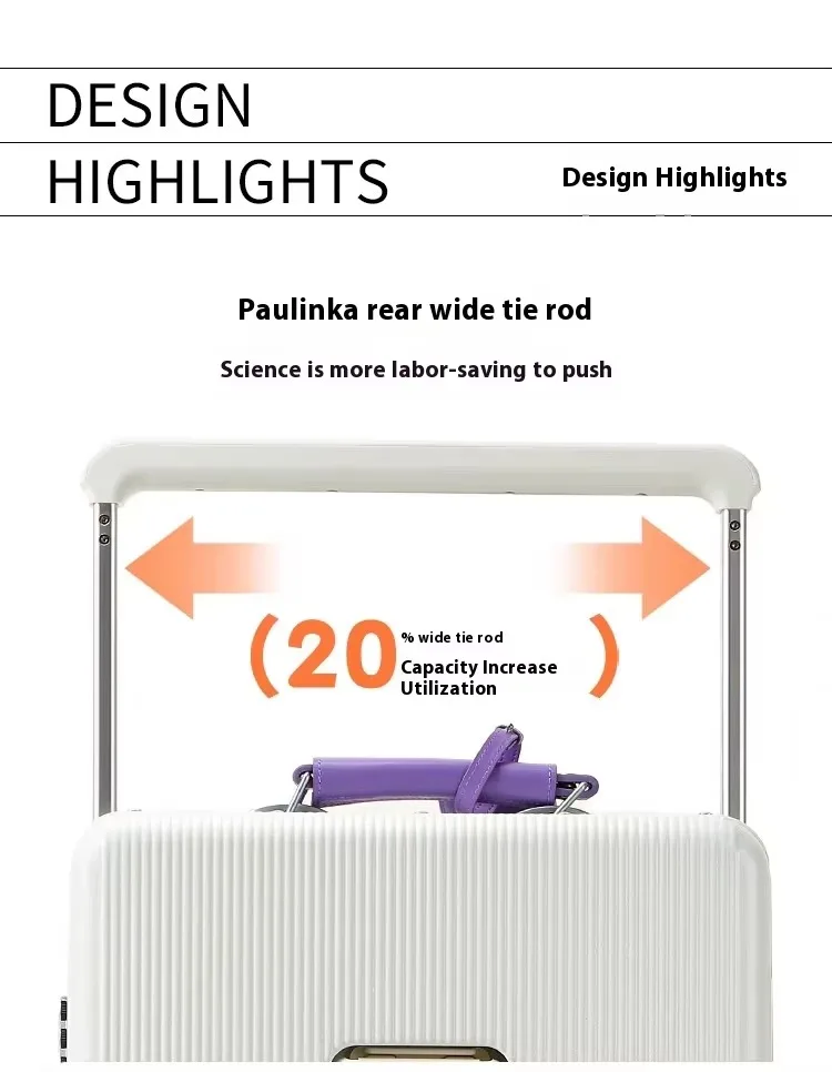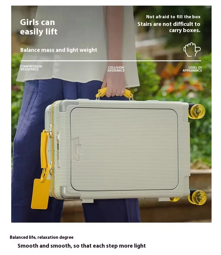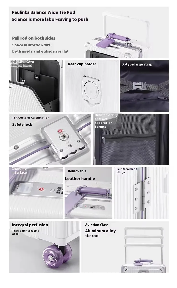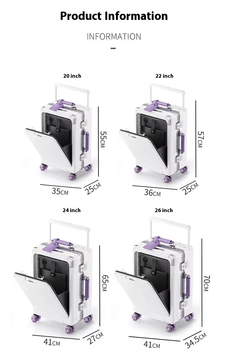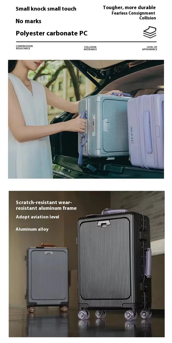 Front Opening Luggage High Quality PC Aluminium Frame Suitcase Wide Handle Carry on Travel Luggage With Laptop USB Charger Port